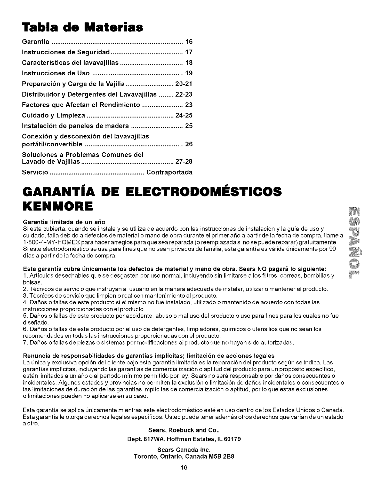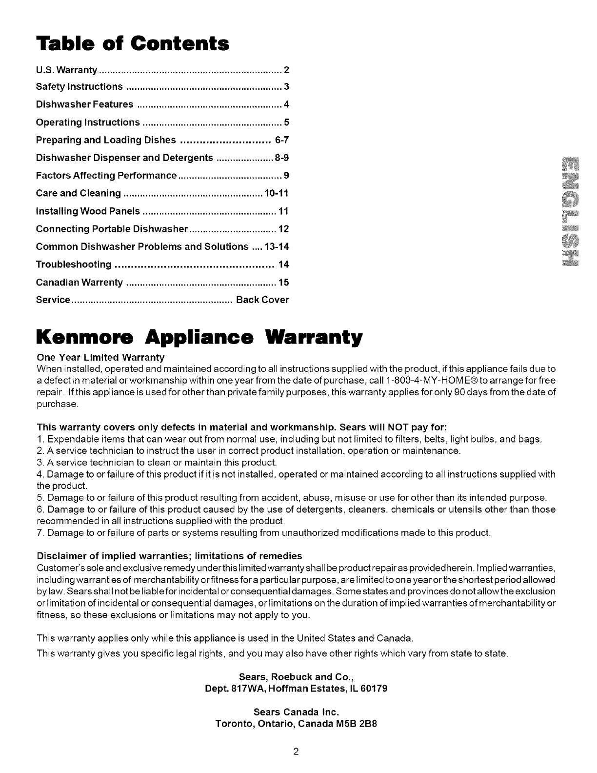 Canadian Warrenty ....................................................... 15
