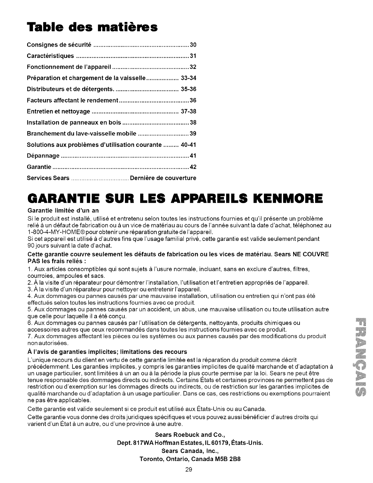 by law. Sears shall not be liable for incidental or consequential damages. Some states and provinces do not allowthe exclusion