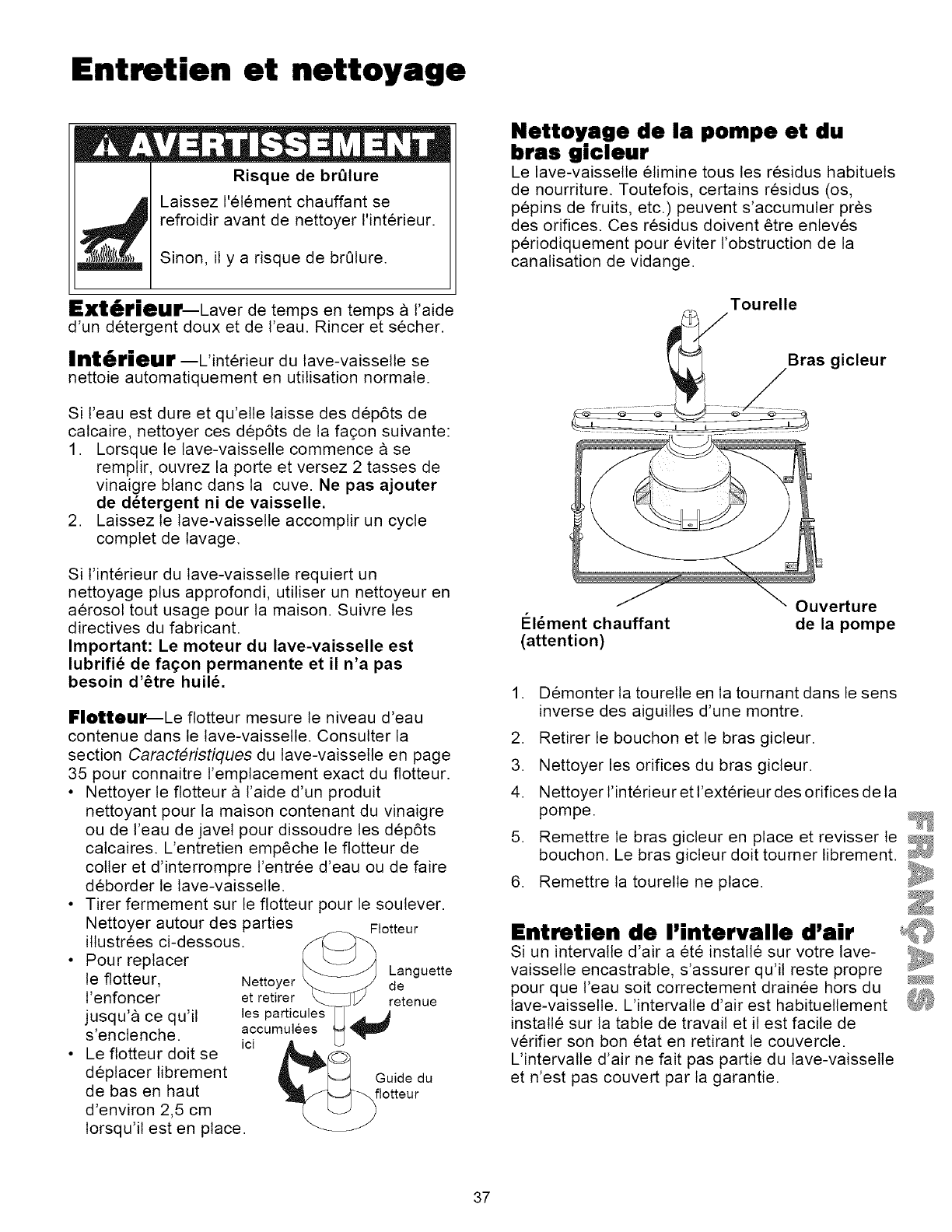 qu'un ustensiles frappe le bras du gicleur. Reportez-