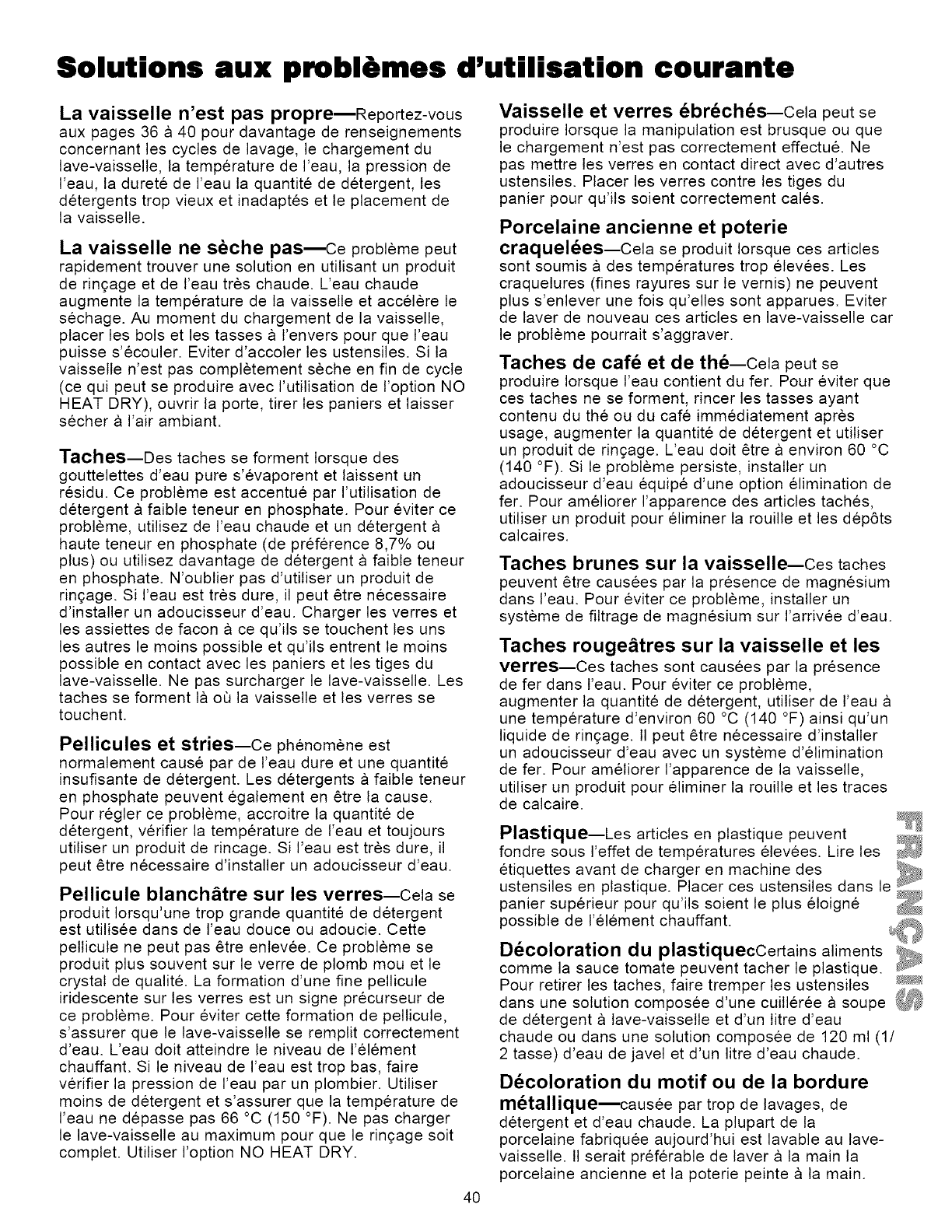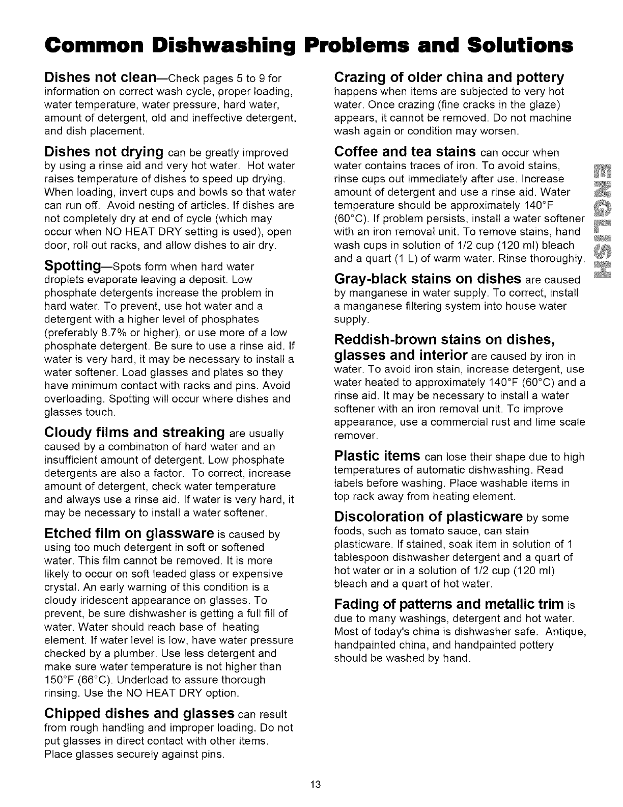 Common Dishwasher Problems and Solutions .... 13-14