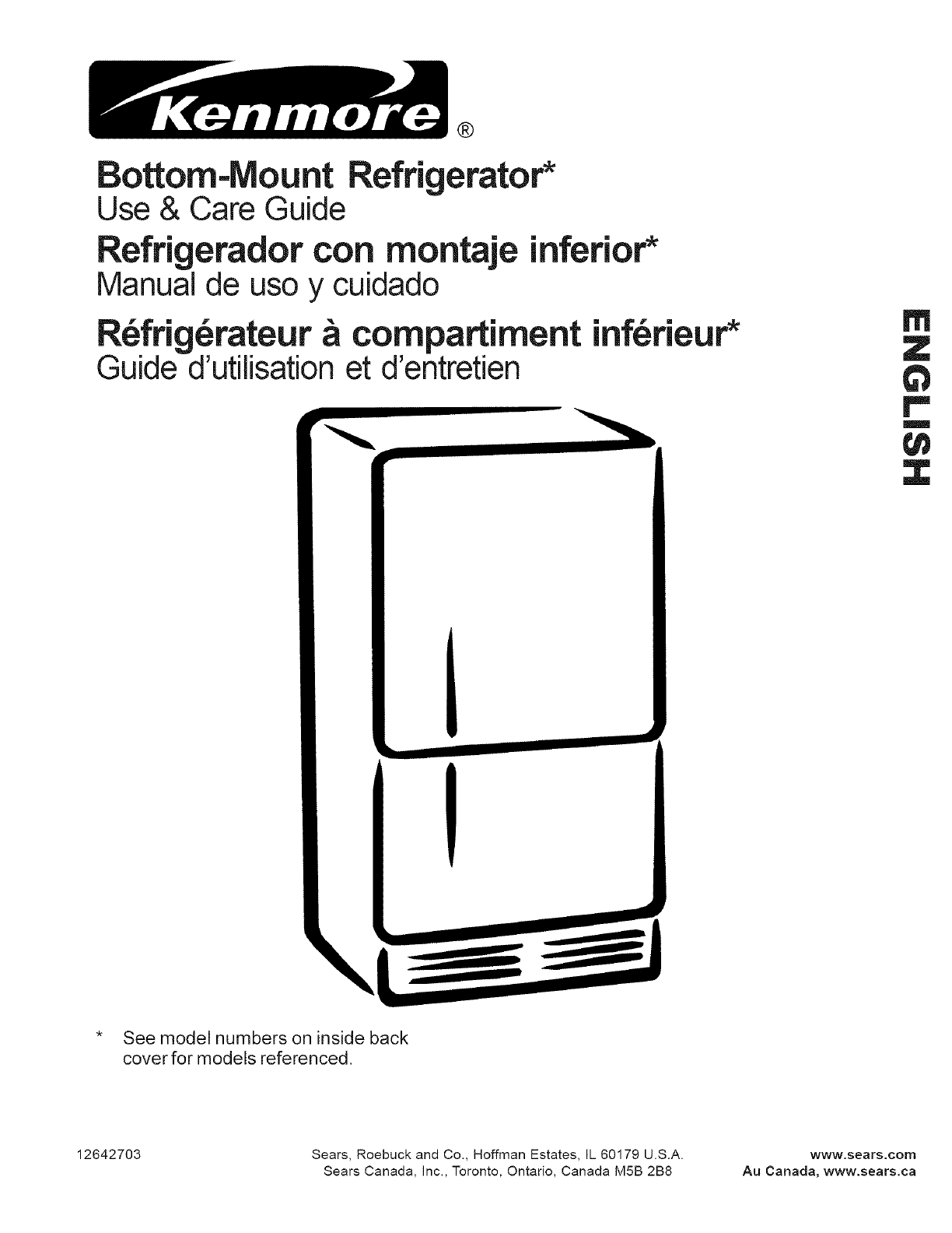 KENMORE Bottom Mount Refrigerator Manual L0703106 KENMORE Bottom Mount Refrigerator Owner's Manual, KENMORE Bottom Mount Refrigerator installation guides