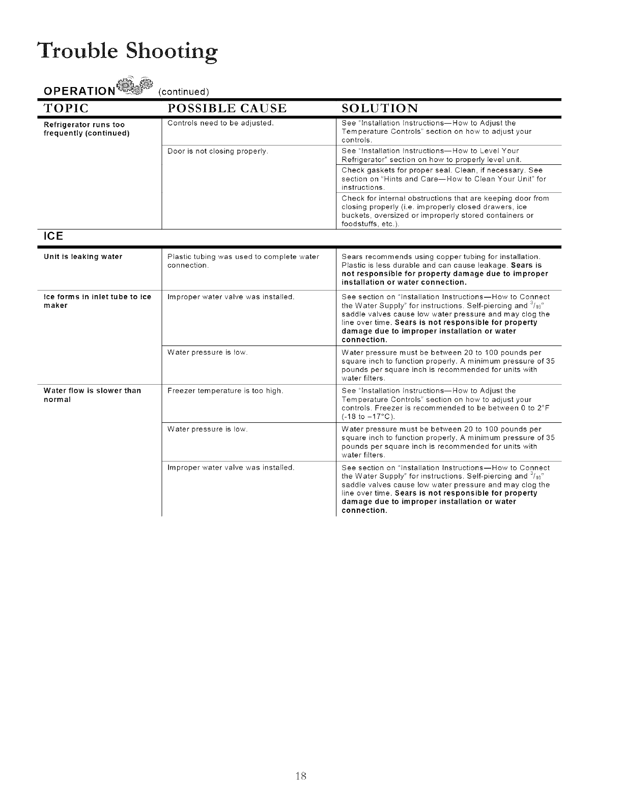 attached to or furnished with it, Sears will repair the sealed system (consisting of refrigerator, connecting tubing and