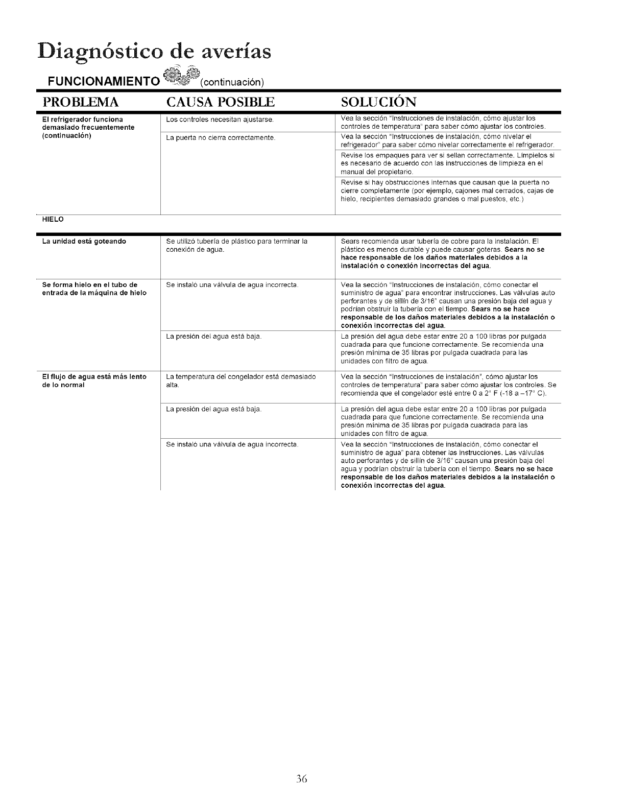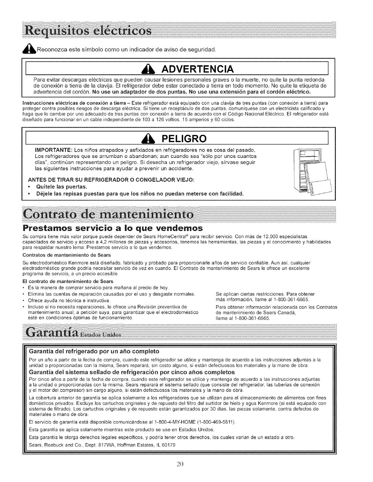 attached to or furnished with it, Sears will repair the sealed system (consisting of refrigerant, evaporator, and condenser)