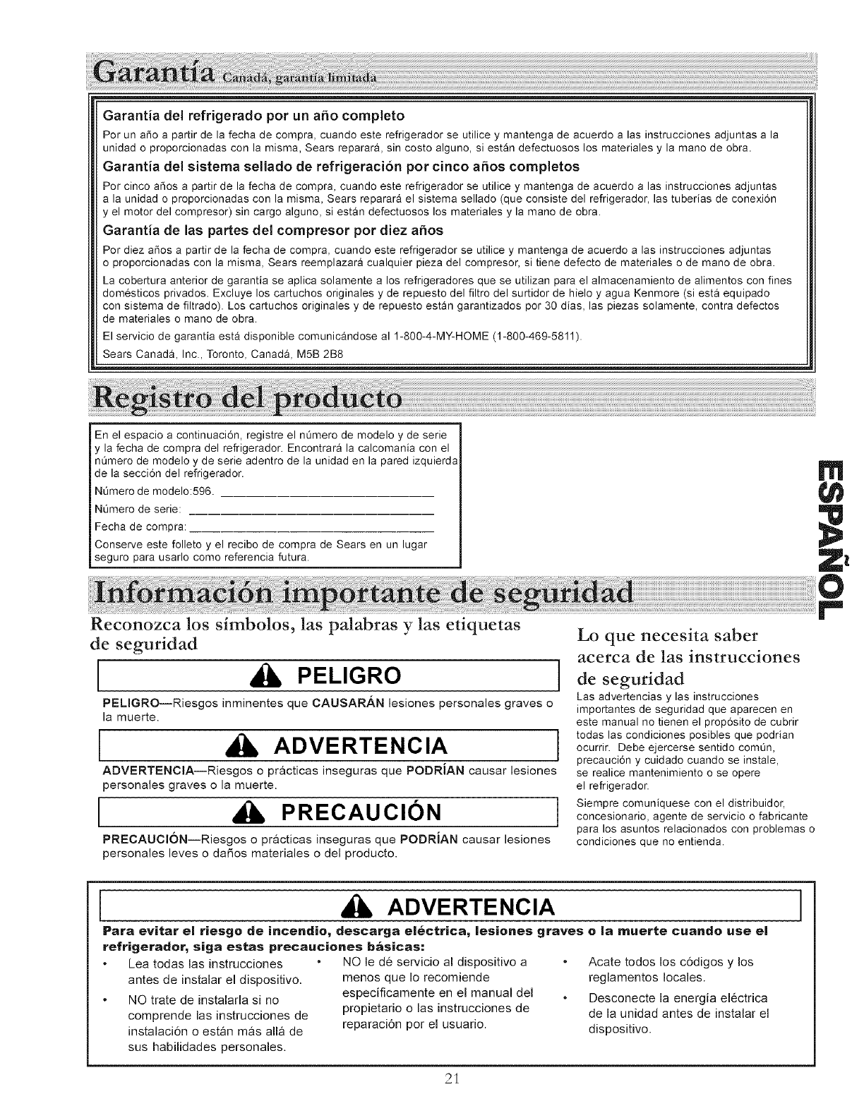 Keep this booklet and your Sears sales receipt in a safe place