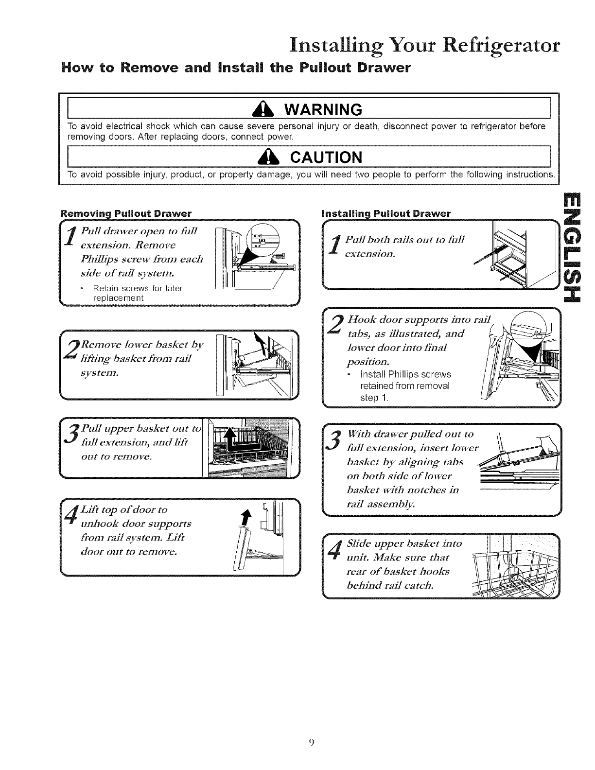 National Electrical Code. Refrigerator is designed to operate on a separate 103 to 126 volt, 15 amp., 60 cycle line.
