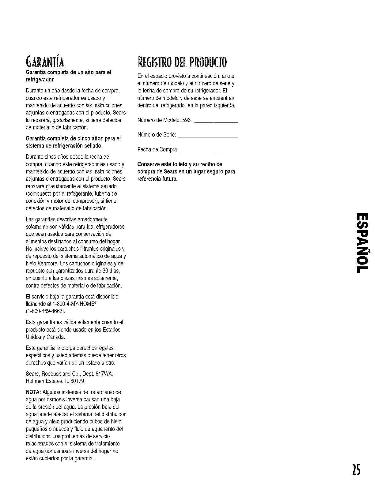 Marca Registrada /Marca de Fabrica /Marca de Servicio de Sears, Roebuck and Co.