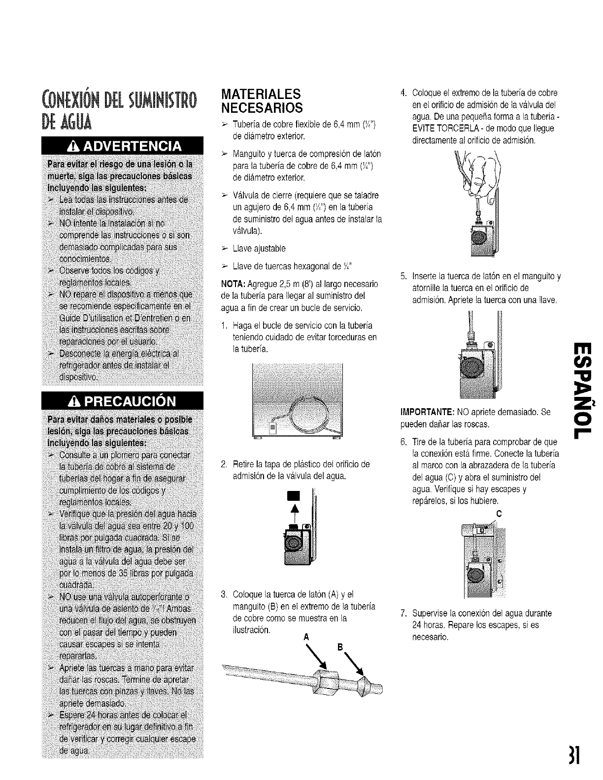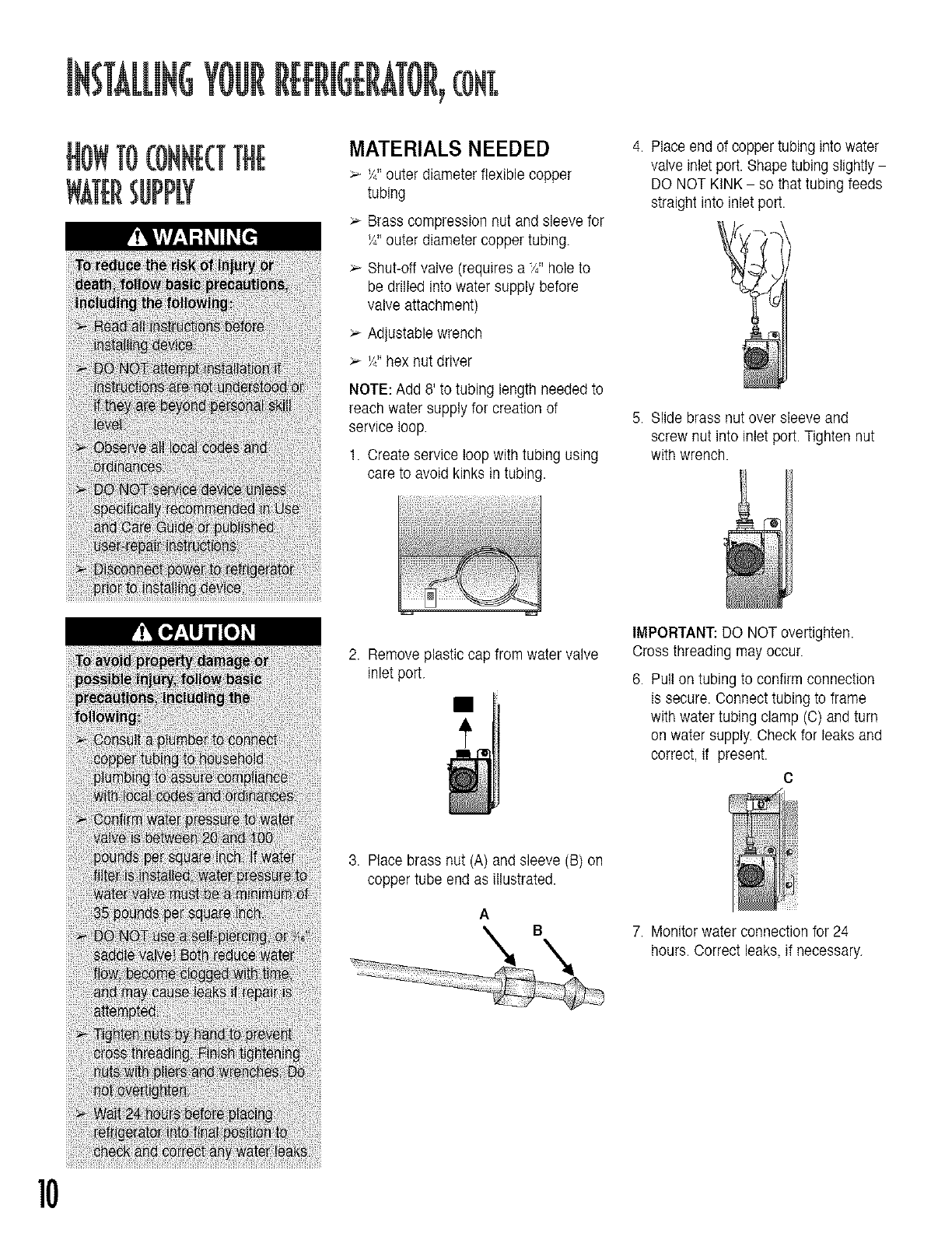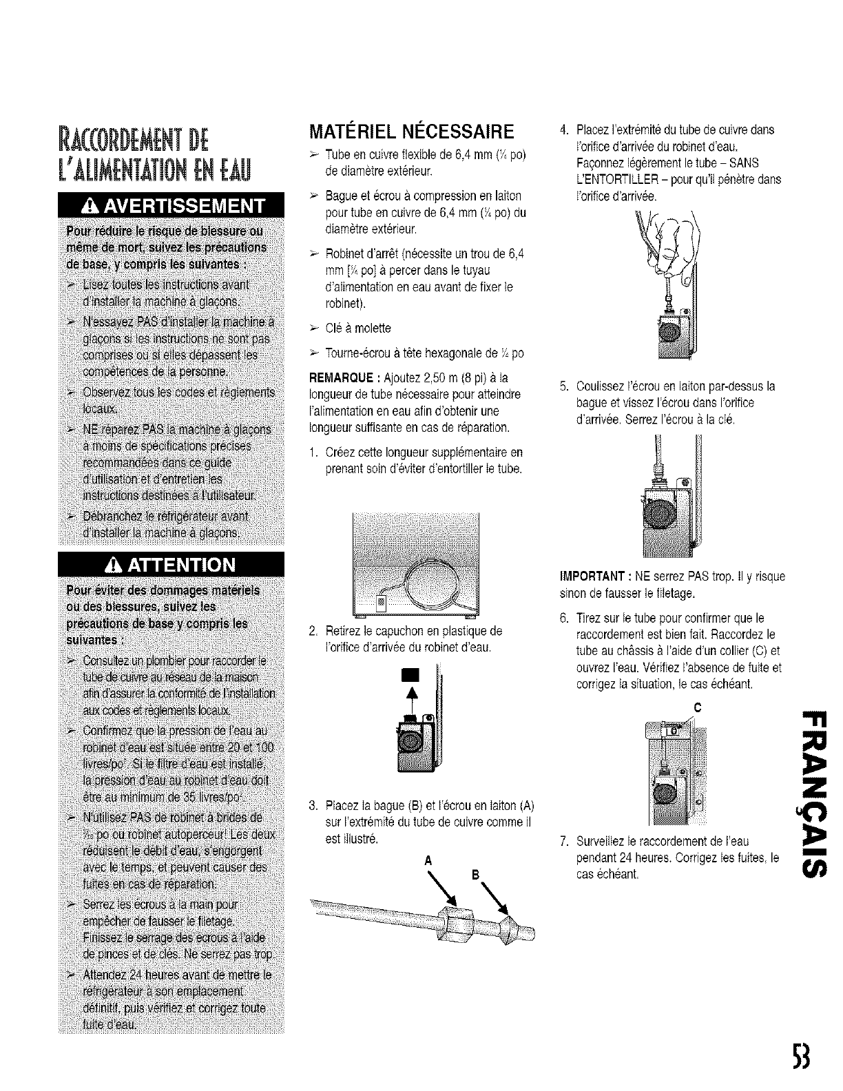 tube d'arrivL,e a la machine_ eneau duchapitreInstallation du r_frigerateur. Losrobinets