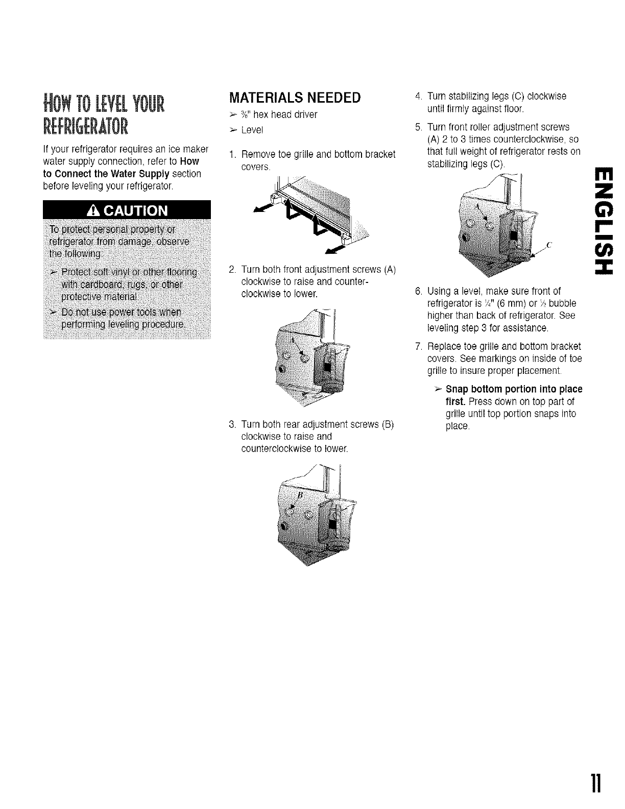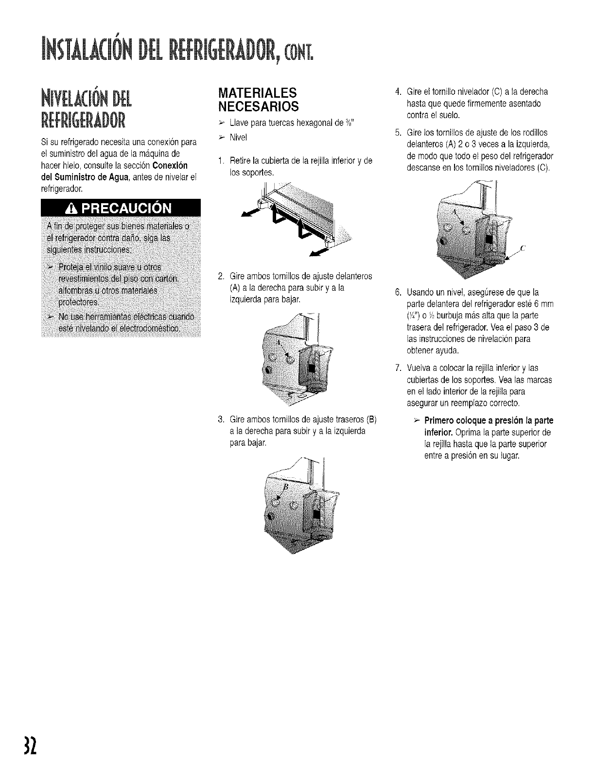 rLffrigerateur,pourle mettrecorrectementde niveau.