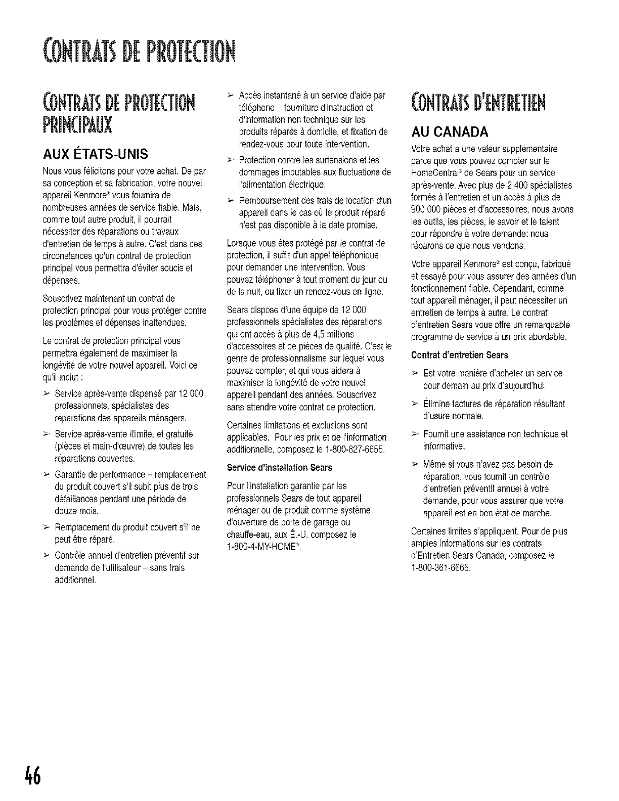 maintenance agreement (Canada) on a product serviced by Sears: