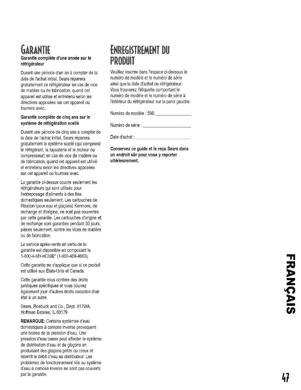 eventuelIementfuin Searsn'est pasresponsabledes dommages