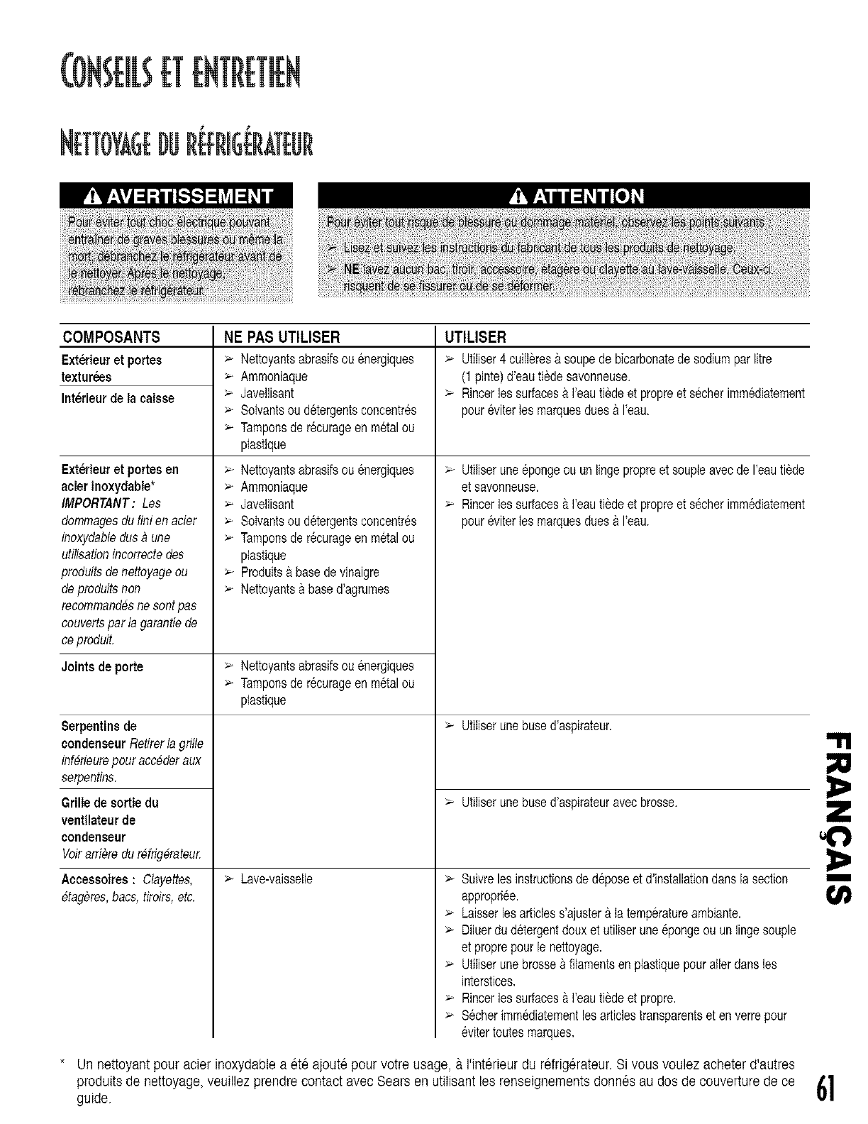 lesinstructionsdanslasectionNettoyagedu r_frigerateur,du
