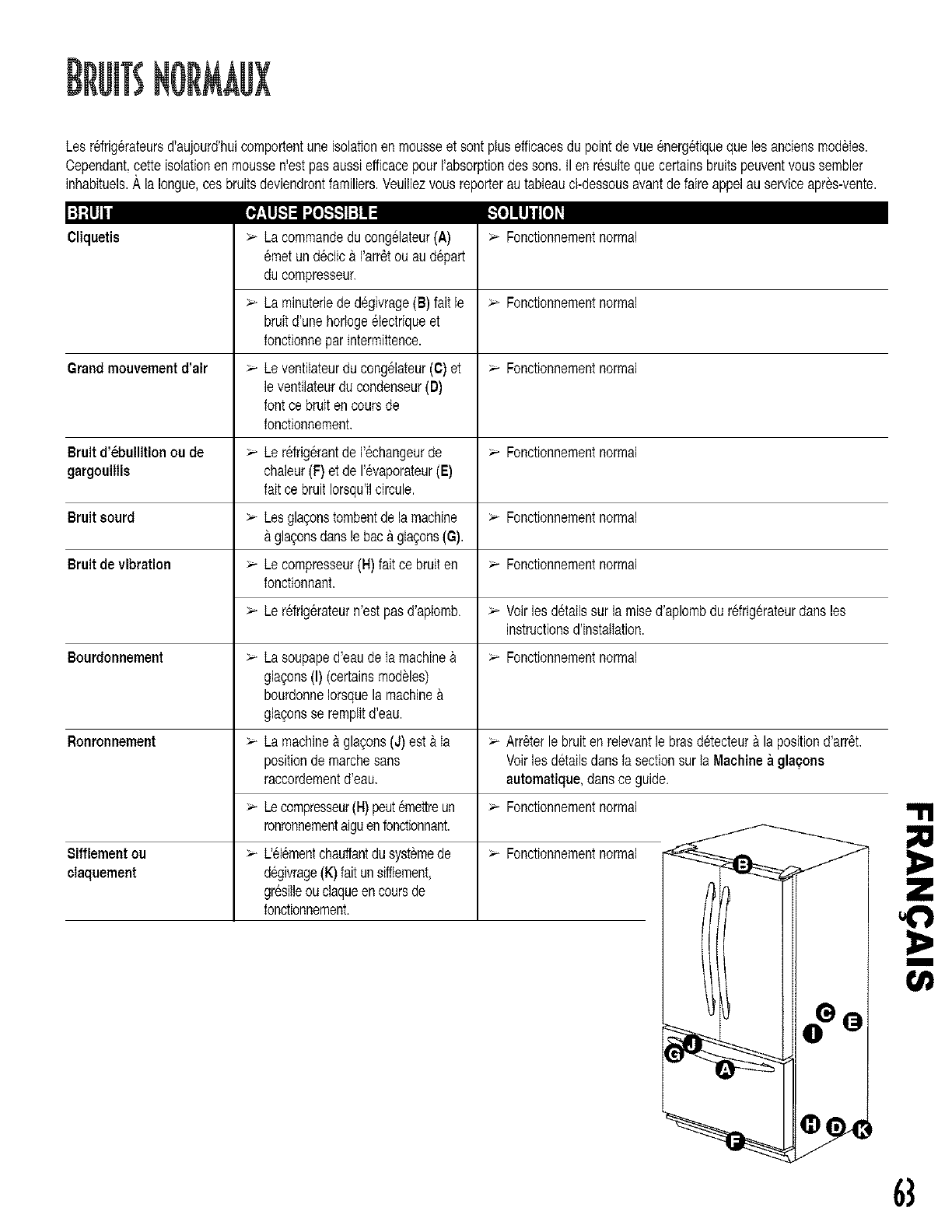 Dela glaee se forme dana le Unemauvaisesoupapea eteinstallee Voirles instructionsdansla sectionRacoordementde I'alimentation