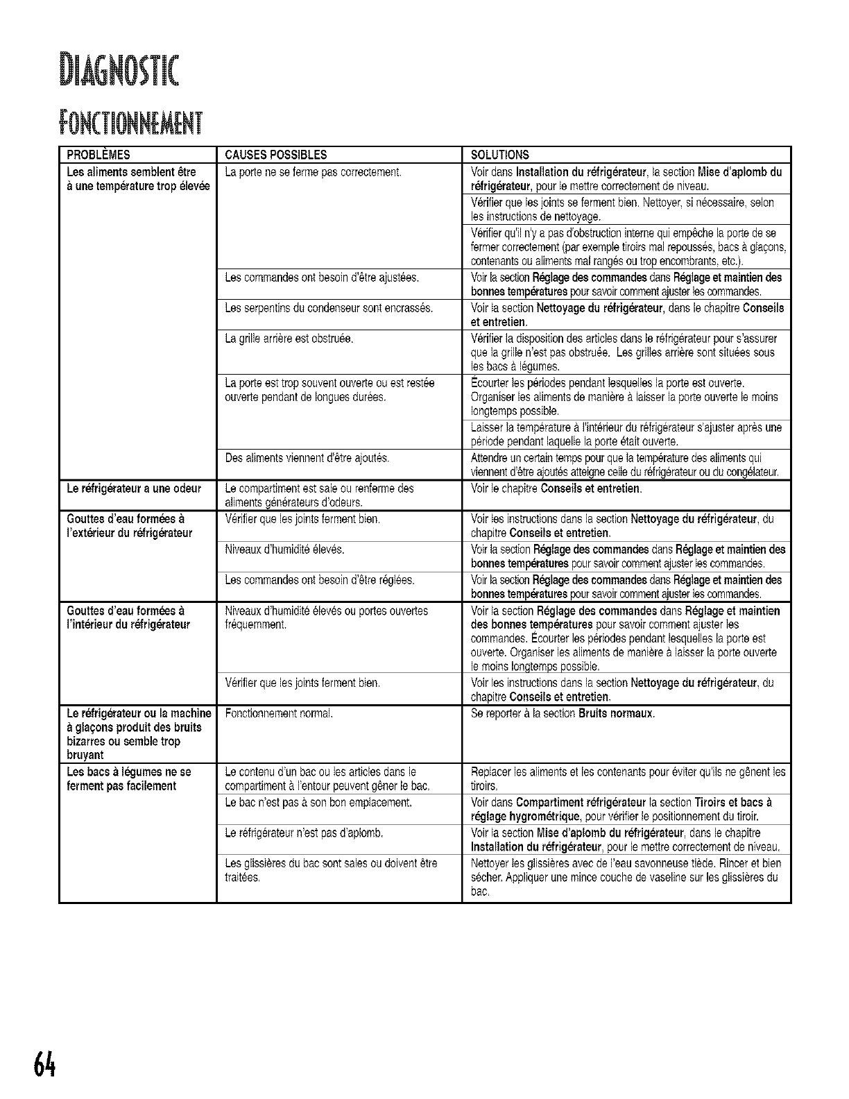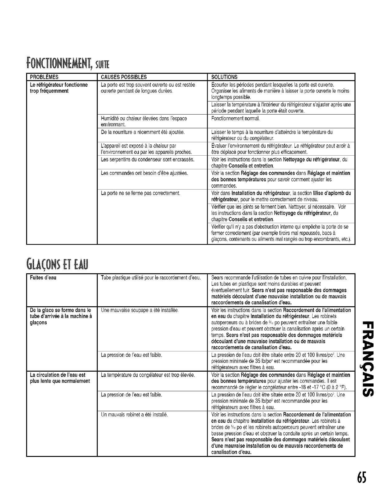 Lacirculation de reau eat La temperaturedu congelateurest tropelevee. Voirla sectionR_glagedes eommandesdartsR_lage et maintien