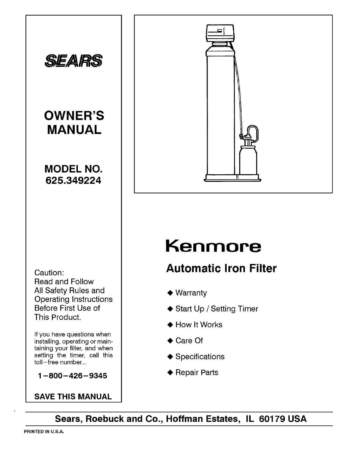 User Manual: Kenmore 625349224 625349224 KENMORE IRON FILTER - Manuals and Guides View the owners manual for your KENMORE IRON FILTER #625349224. Home:Plumbing Parts:Kenmore Parts:Kenmore IRON FILTER Manual