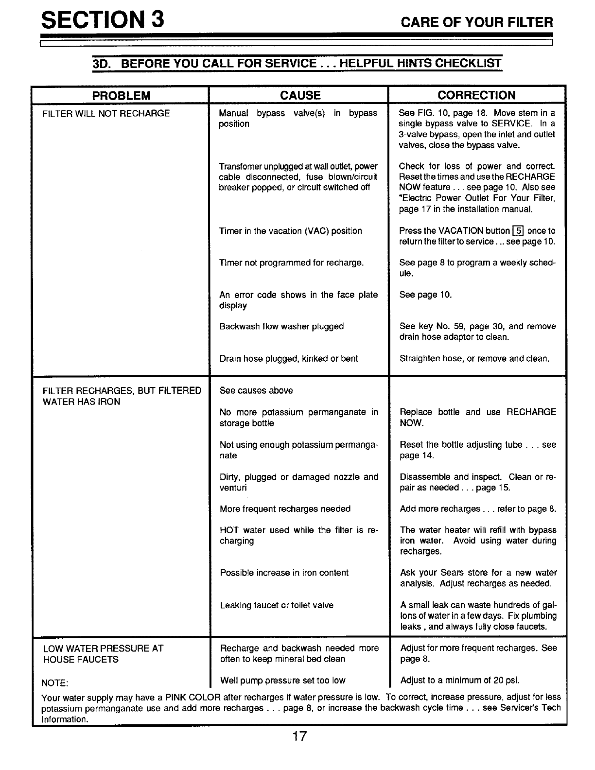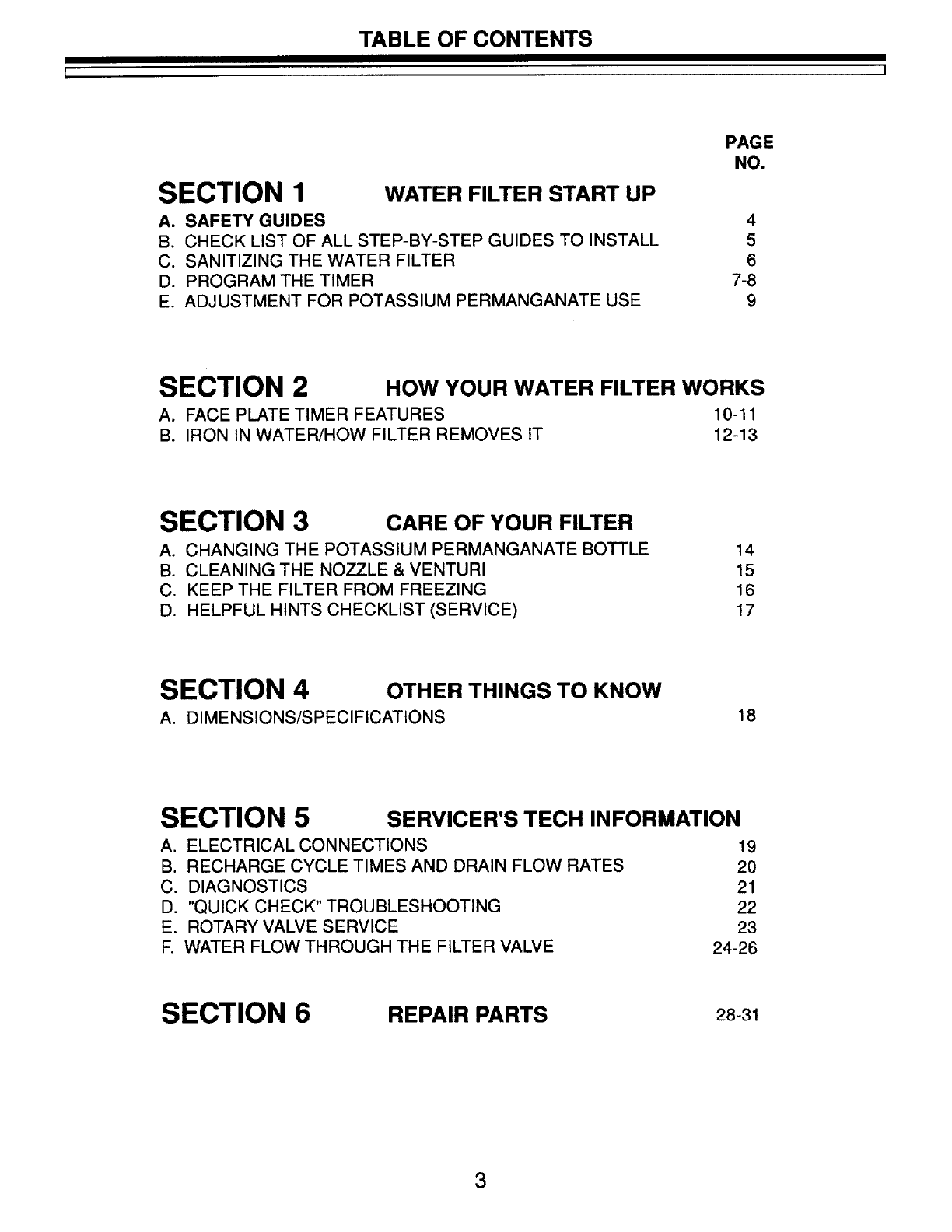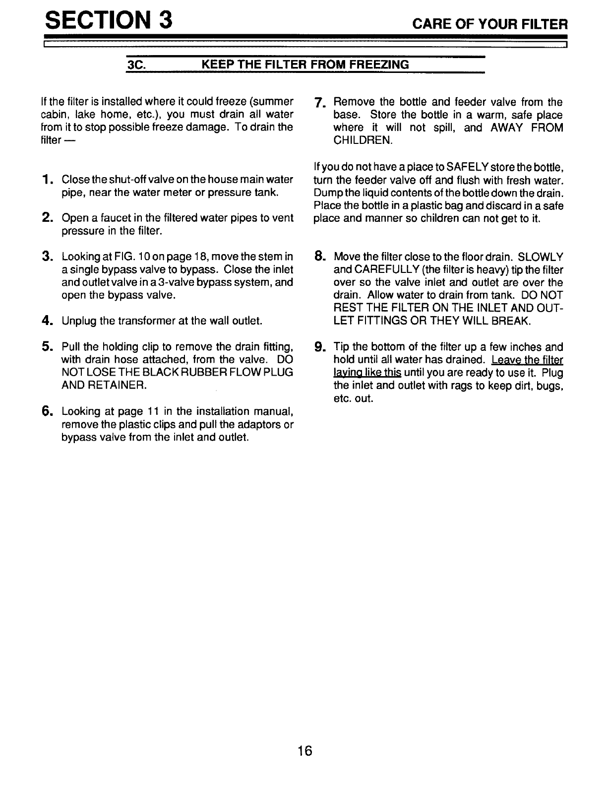 SECTION 3 CARE OF YOUR FILTER
