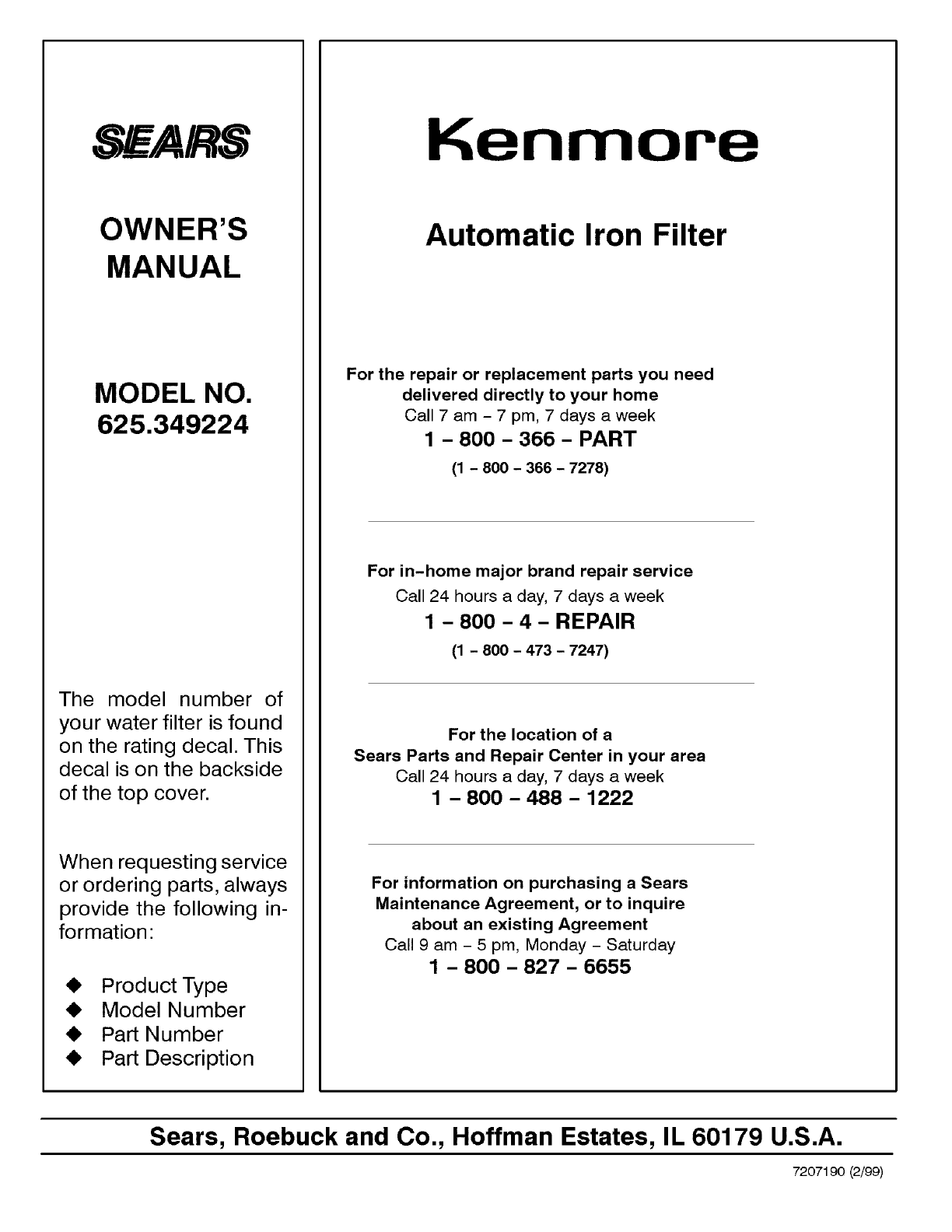 Kenmore 625349224 User Manual IRON FILTER Manuals And Guides L0803150