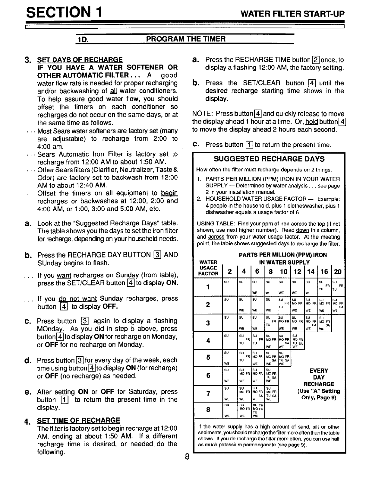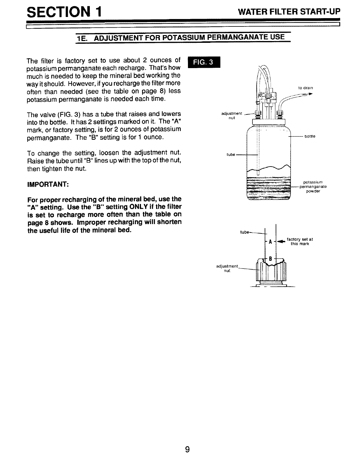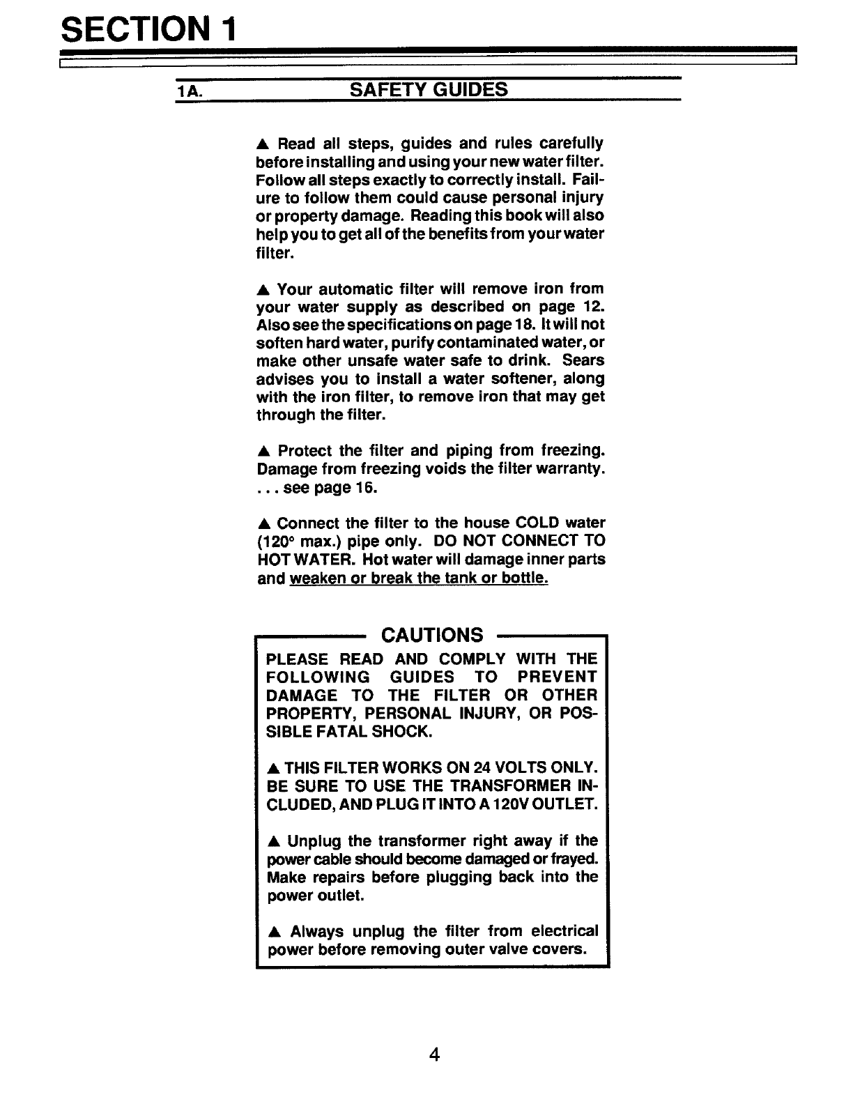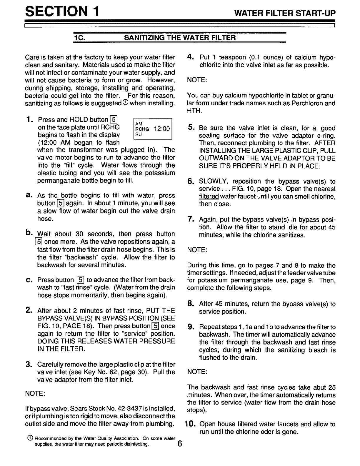 SECTION 1 WATER FILTER START UP