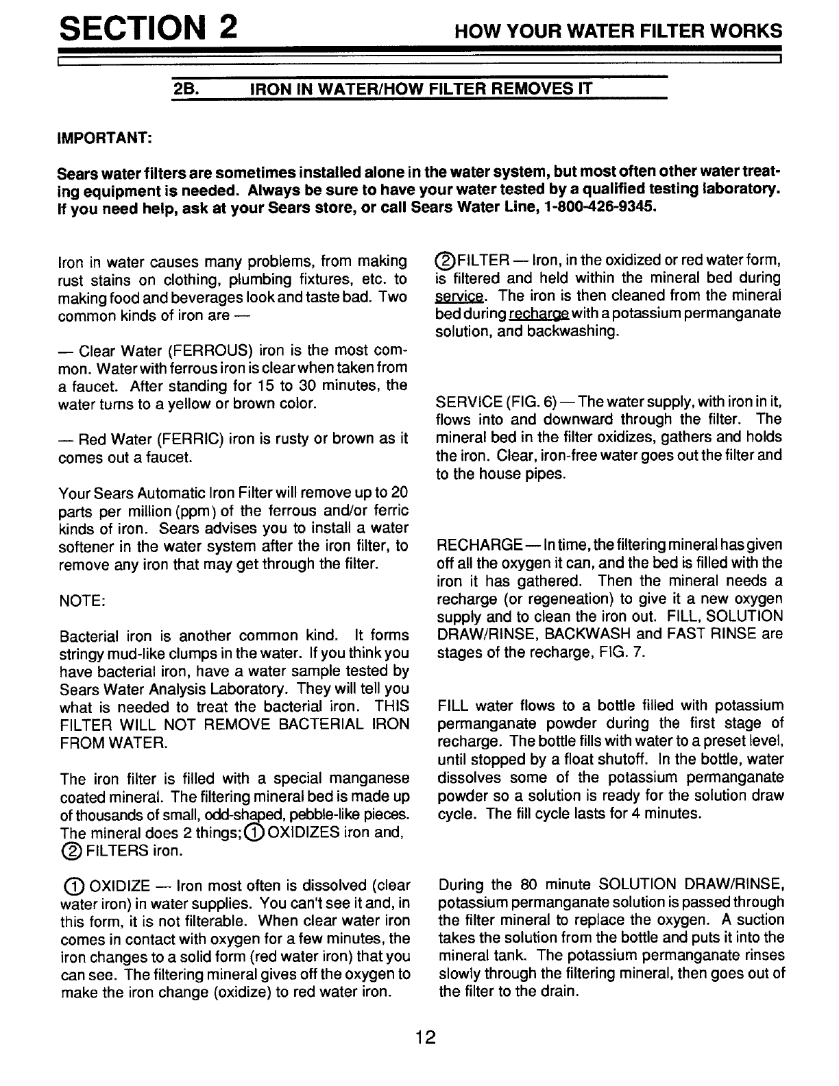 KENMORE Iron Filter Manual L0803150 KENMORE Iron Filter Owner's Manual, KENMORE Iron Filter installation guides