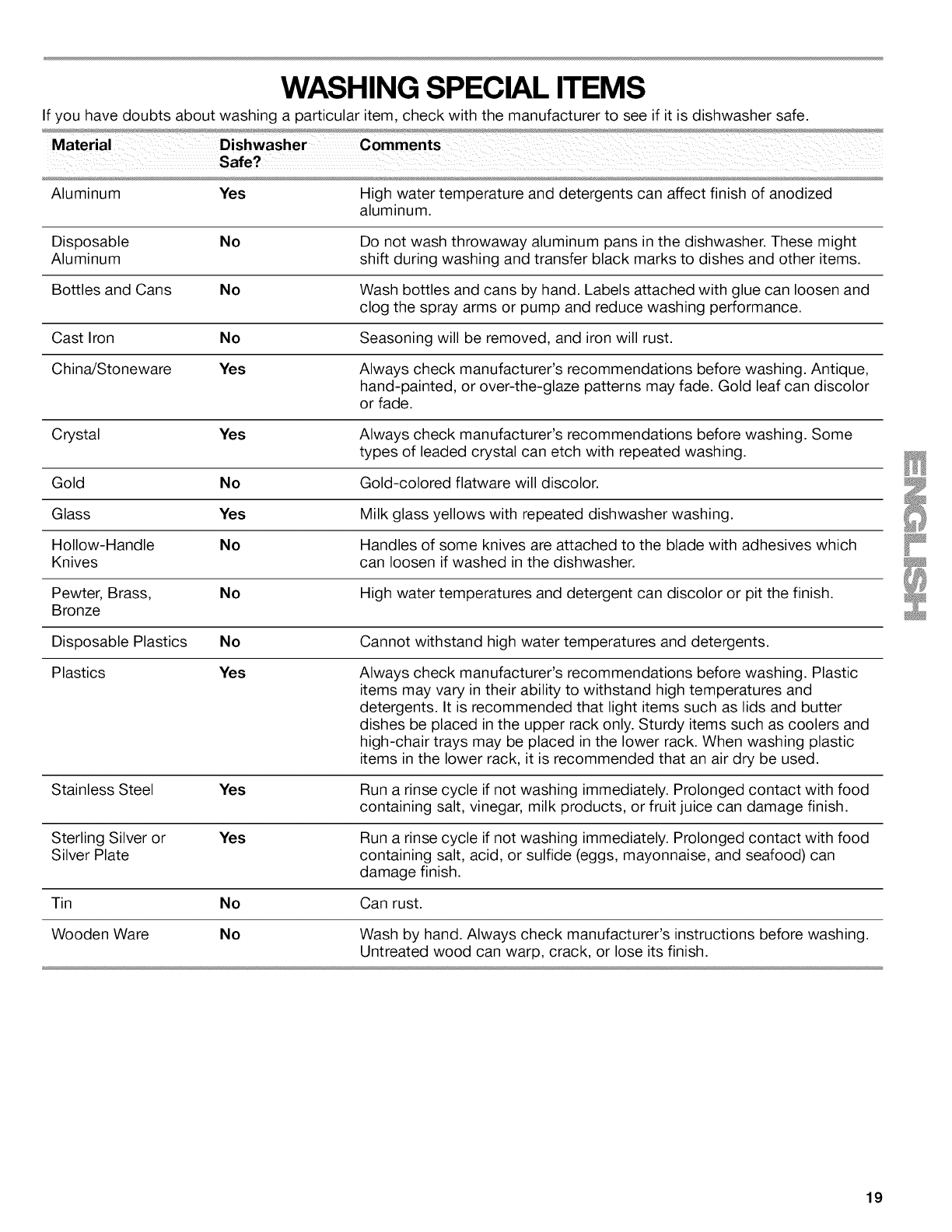 WASHING SPECIAL ITEMS ......................................................... 19