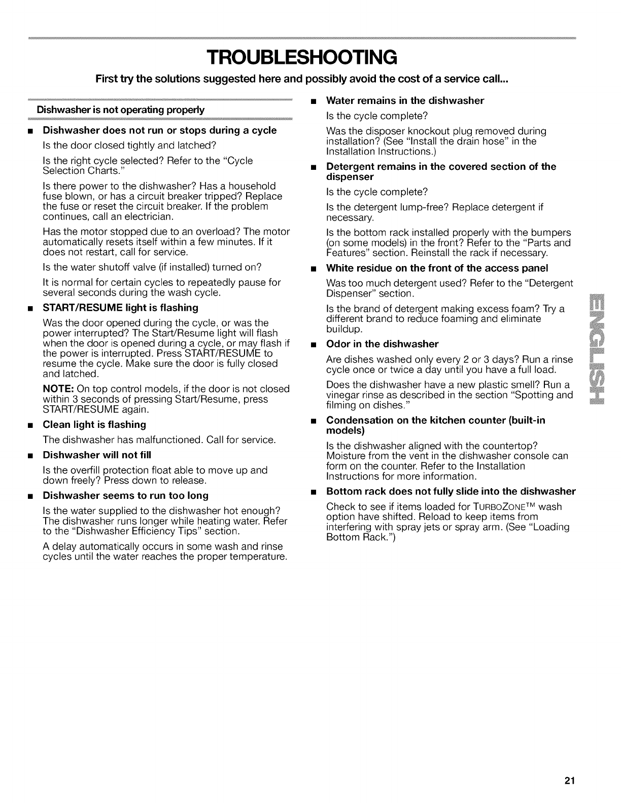 DISHWASHER CARE ................................................................... 20