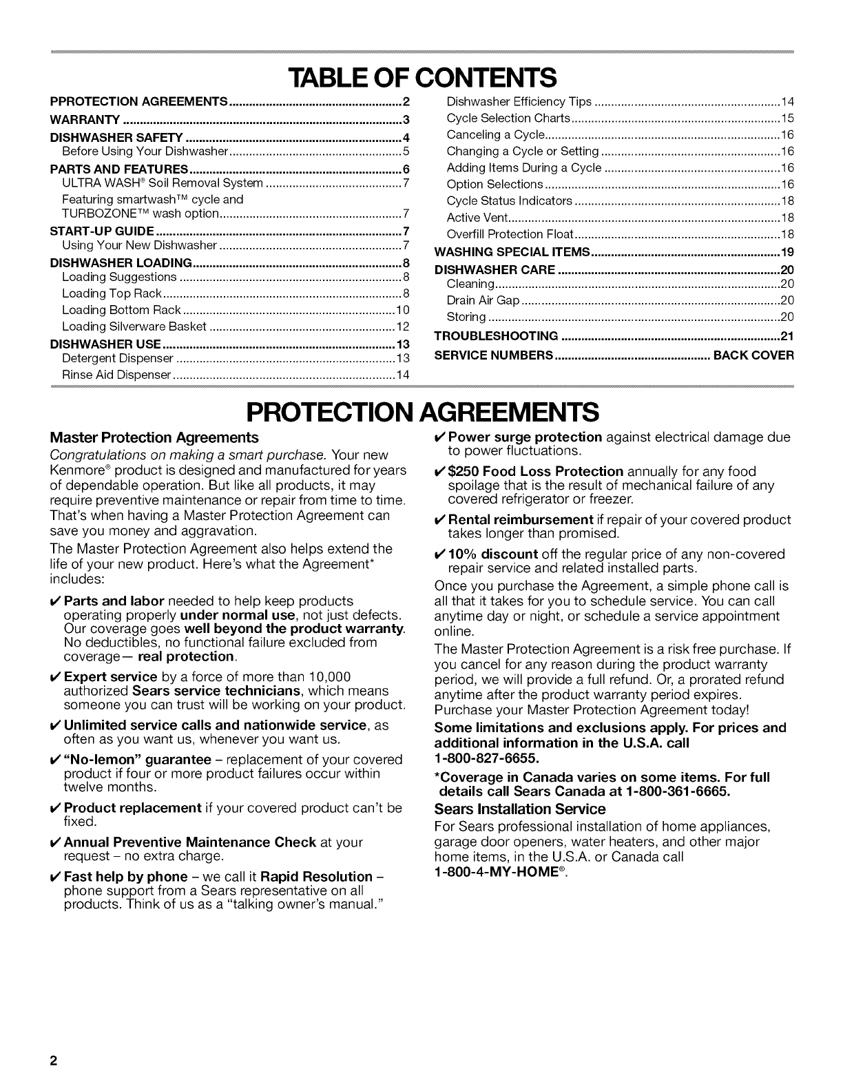 SERVICE NUMBERS ............................................... BACK COVER