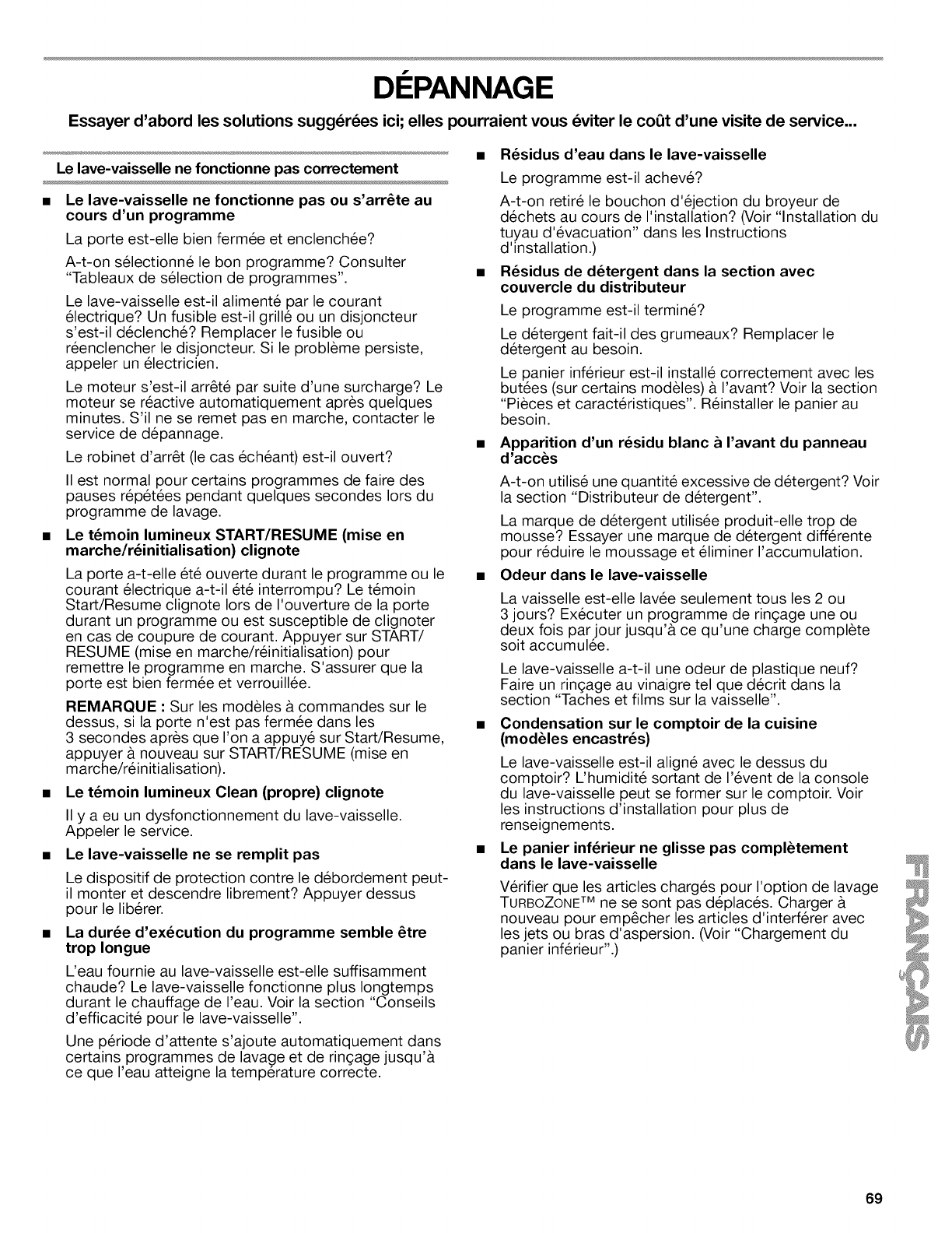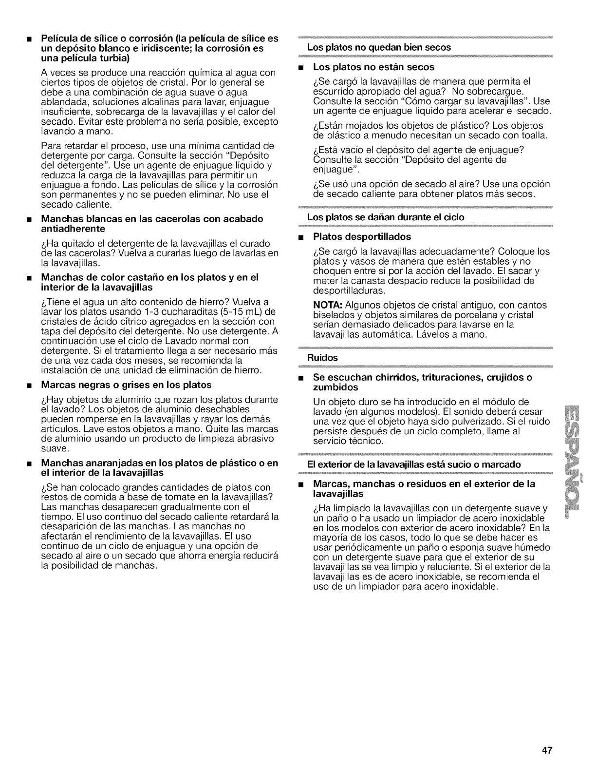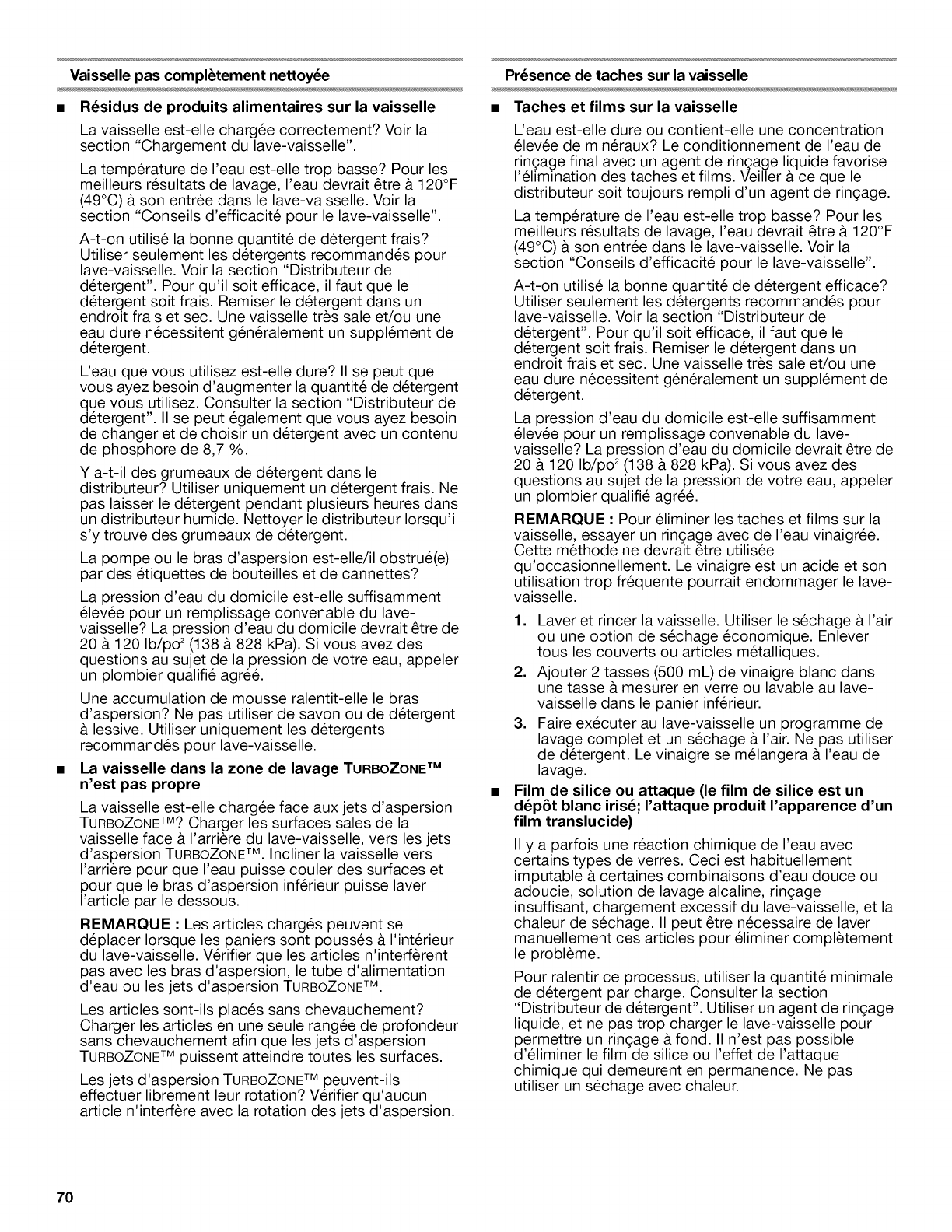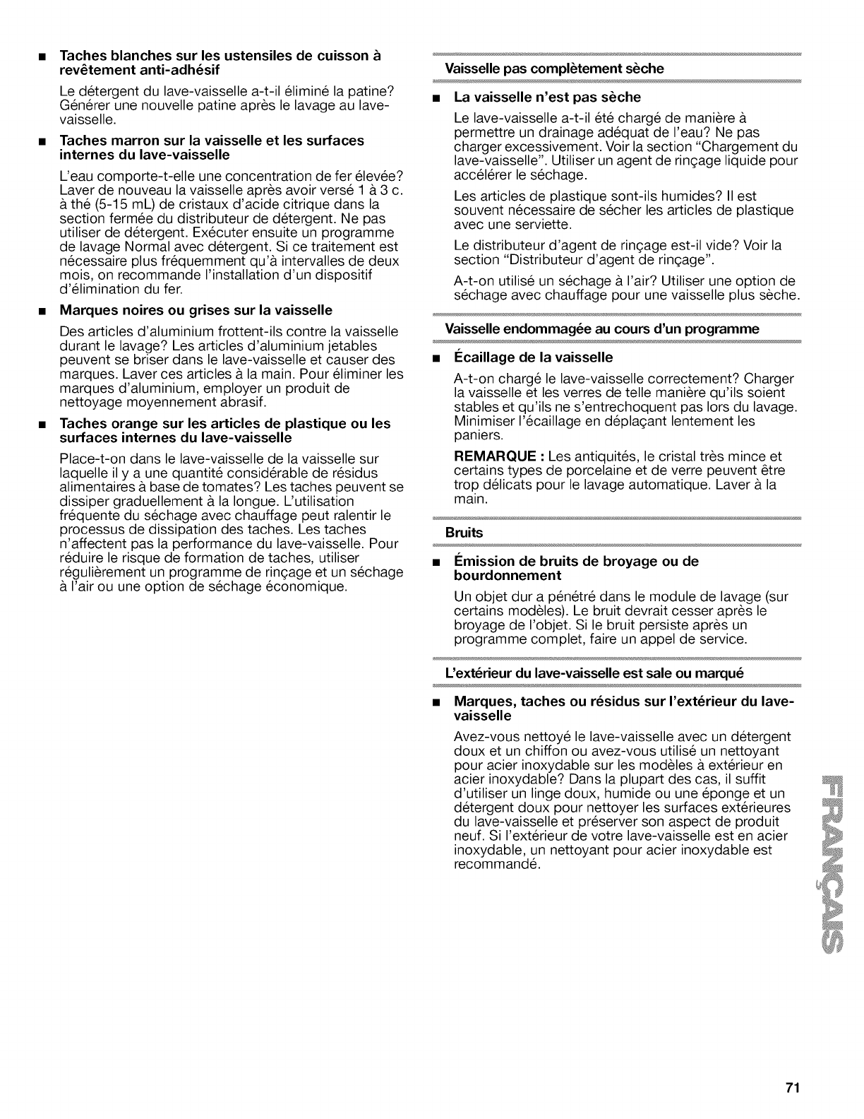 •Marques, taches ou r6sidus sur I'ext6rieur du lave-