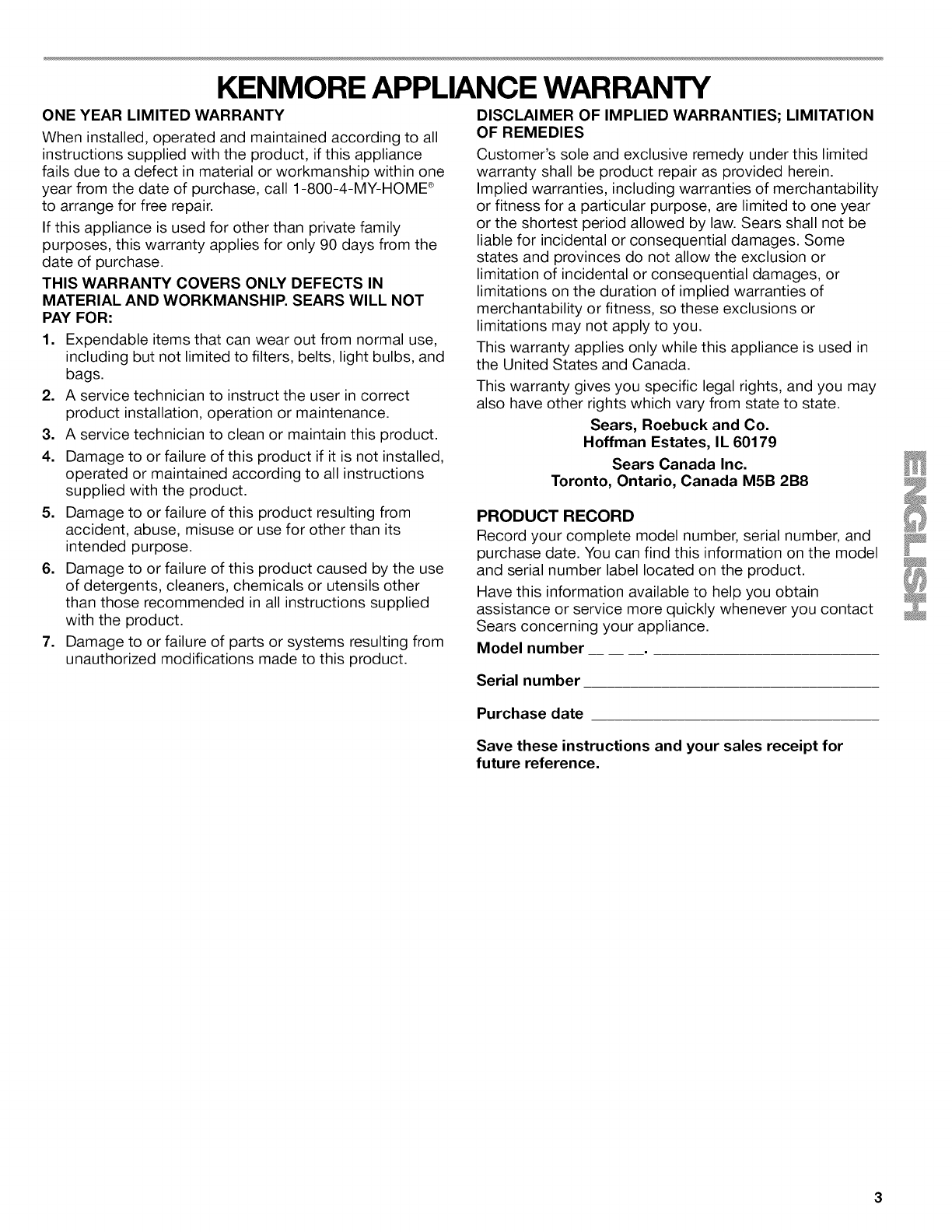 Kenmore ®product is designed and manufactured for years