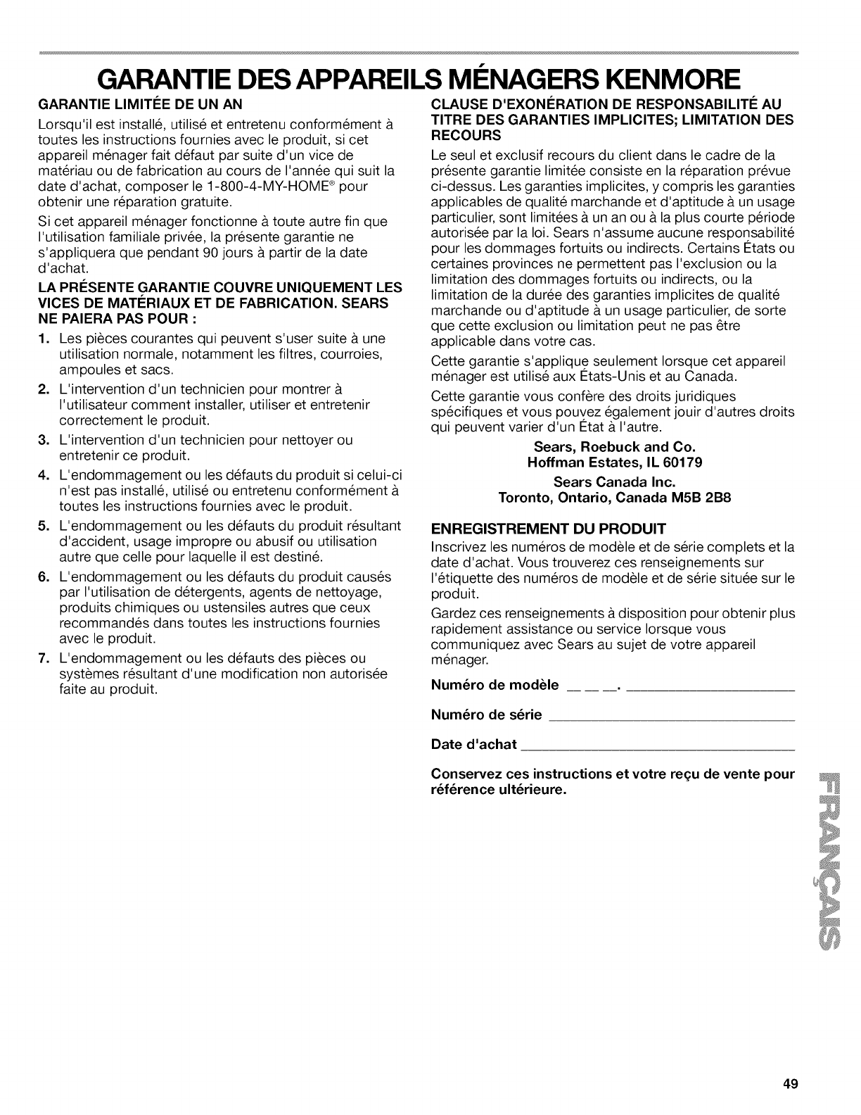 Sears Roebuck and Co., Hoffman Estates, IL 60179 U.S.A. www.sears.com