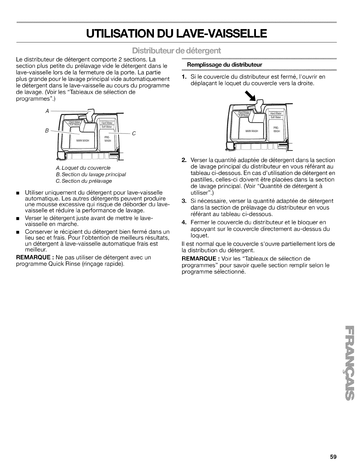 lave-vaisselle". Utiliser un agent de rin(_age liquide pour