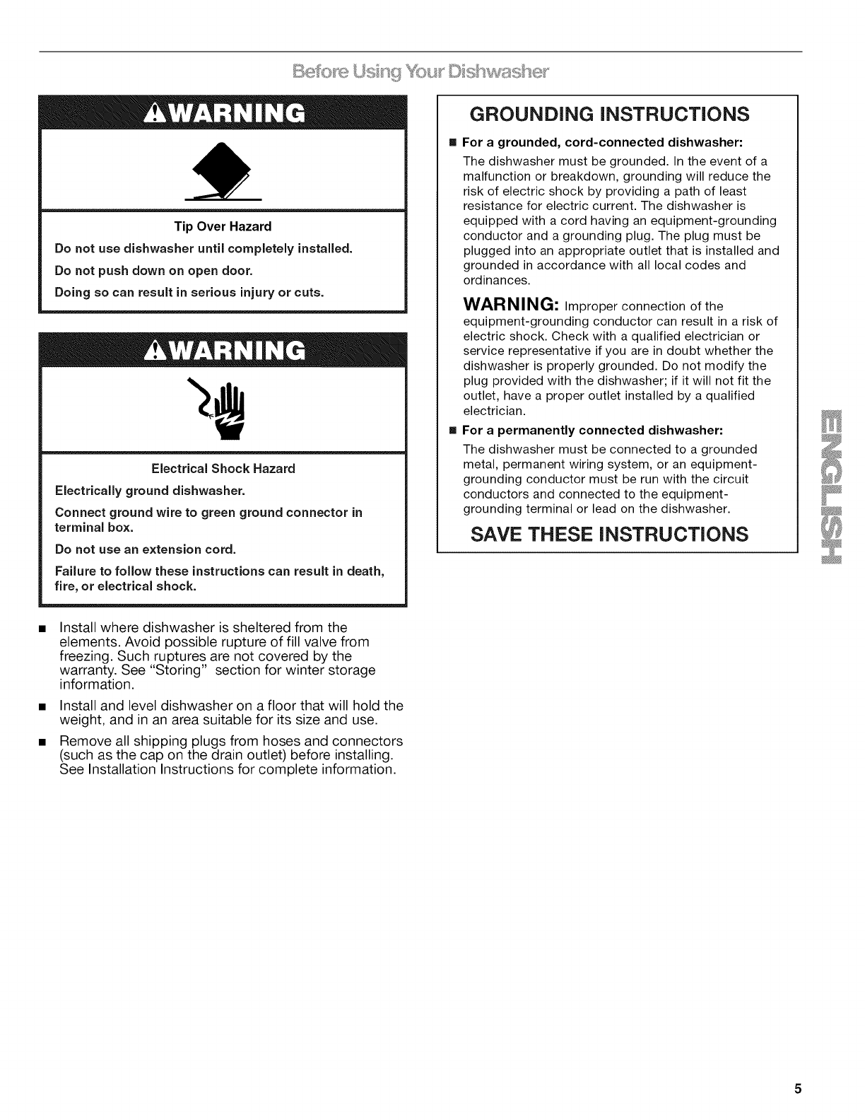 Before Using Your Dishwasher .................................................... 5