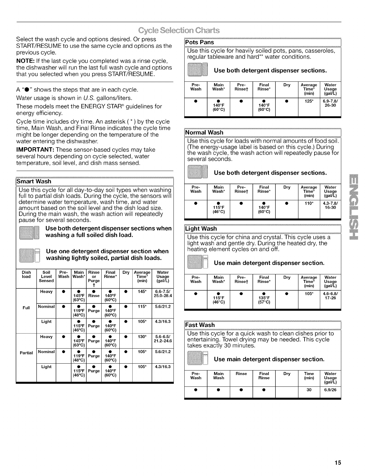 Cycle Selection Charts ............................................................... 15