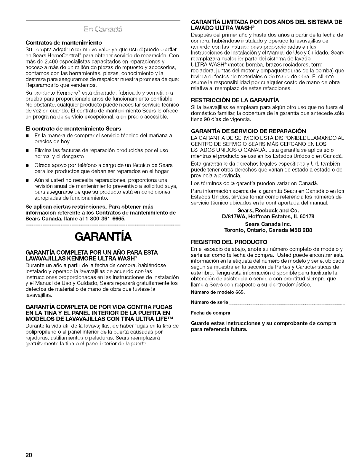 or maintenance agreement (Canada)on a product serviced by Sears: