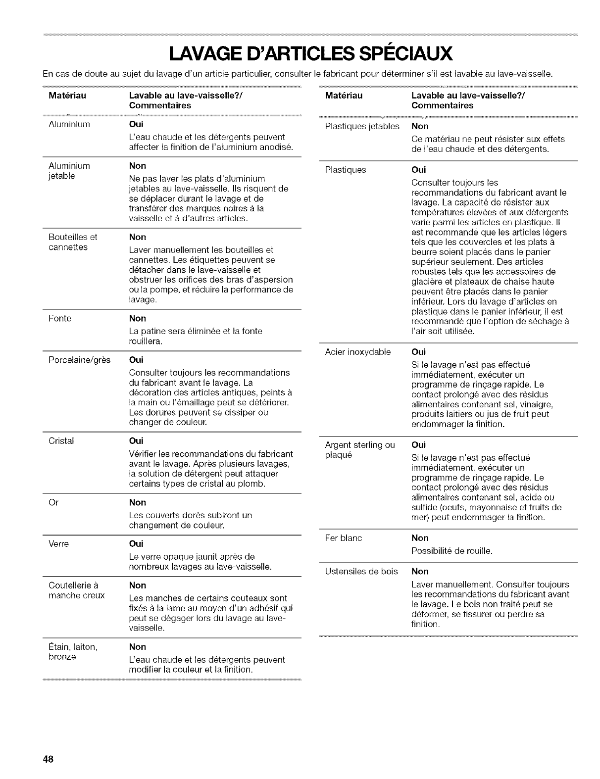deteriorer dans le lave-vaisselle et causer des marques. Laver