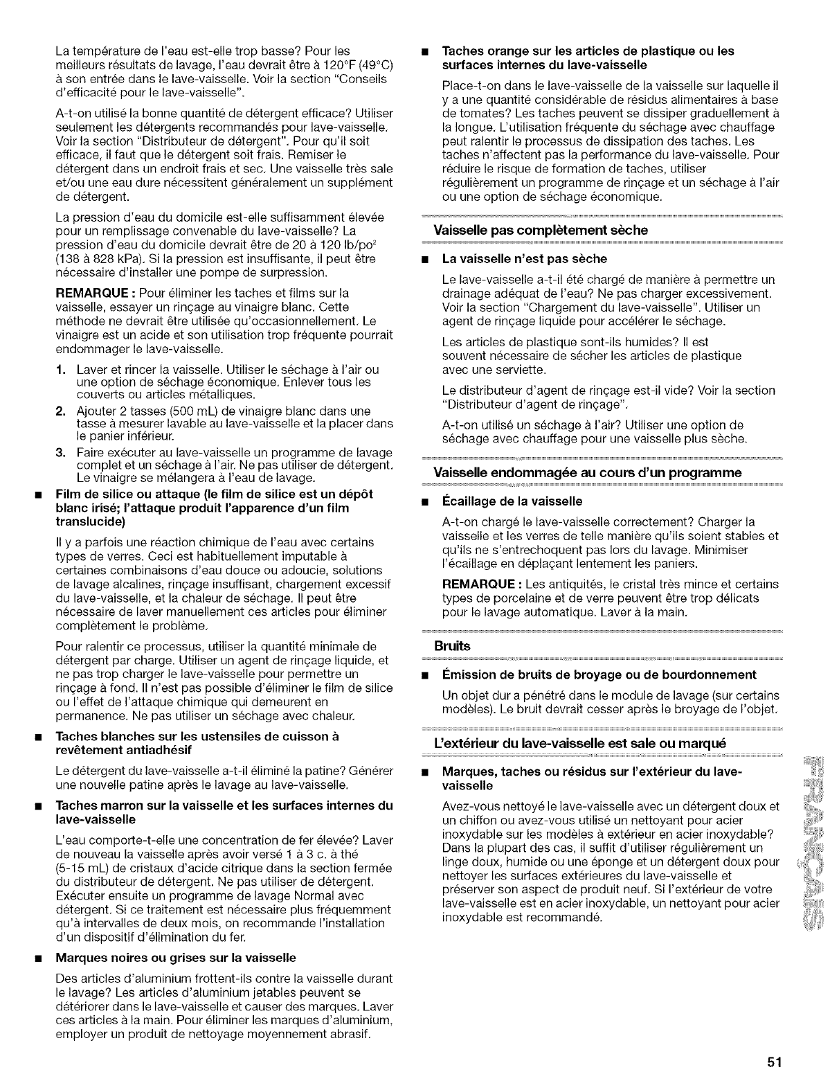 taches n'affectent pas la performance du lave-vaisselle. Pour