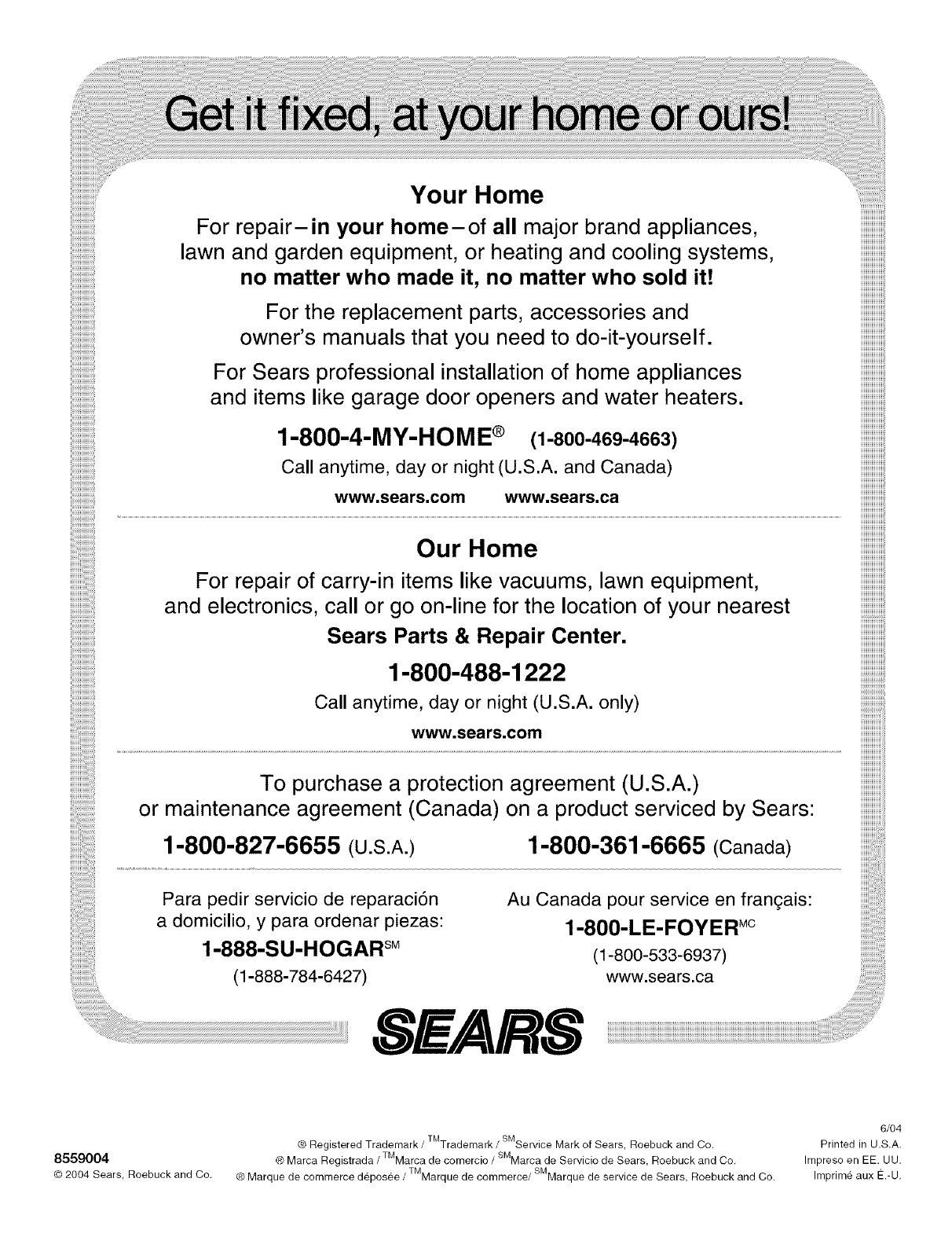 ® Registered Trademark /Trademark /Service Mark of Sears, Roebuck and Co,