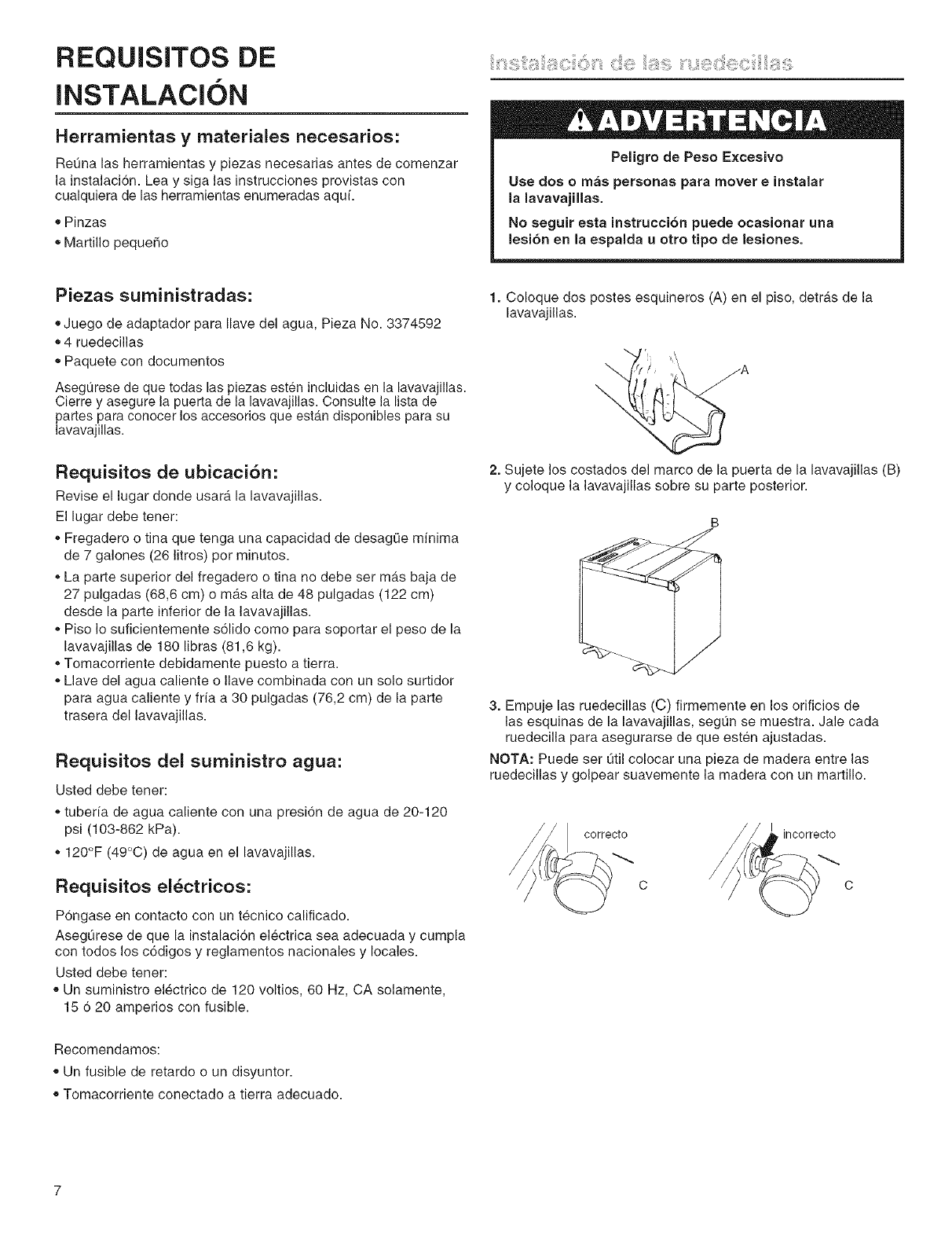 1. Placer deux cornieres (A) sur le plancher & I'arriere du lave-