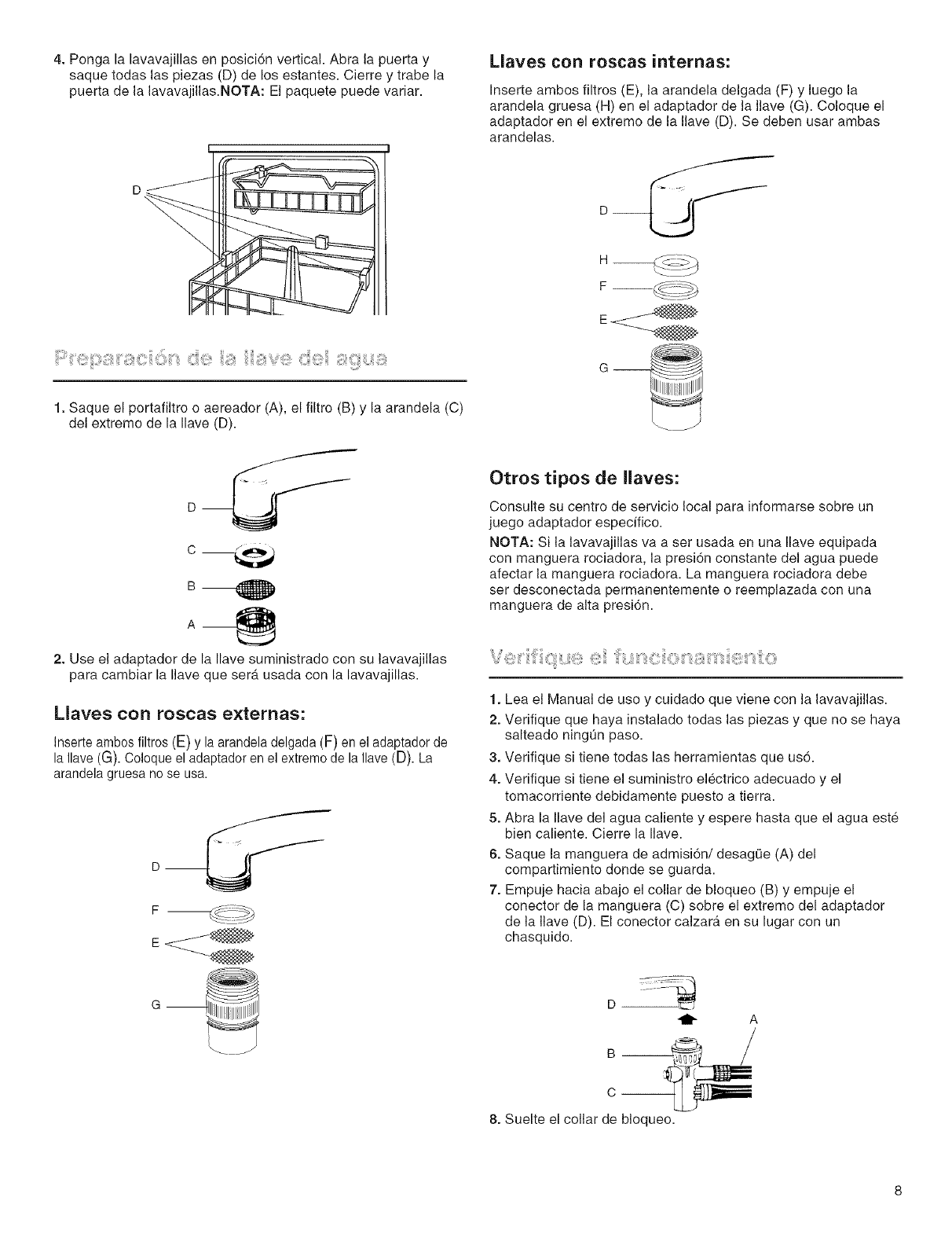 de robinet. Visser I'adaptateur sur I'extremite du robinet (D). Ne pas
