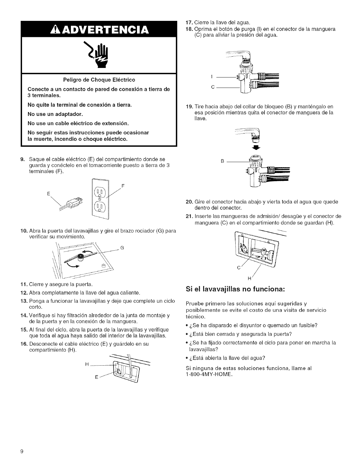 (H) dans I'adaptateur (G) de robinet. Visser I'adaptateur sur I'extremite