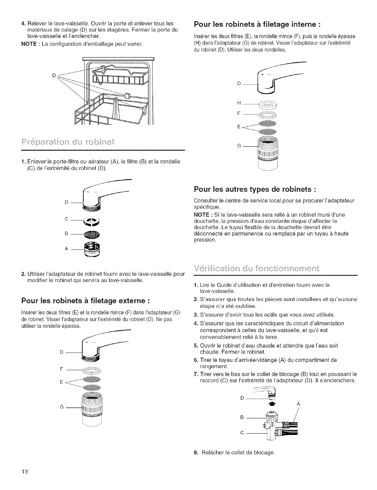 NOTE : Si le lave-vaisselle sera relie & un robinet muni d'une