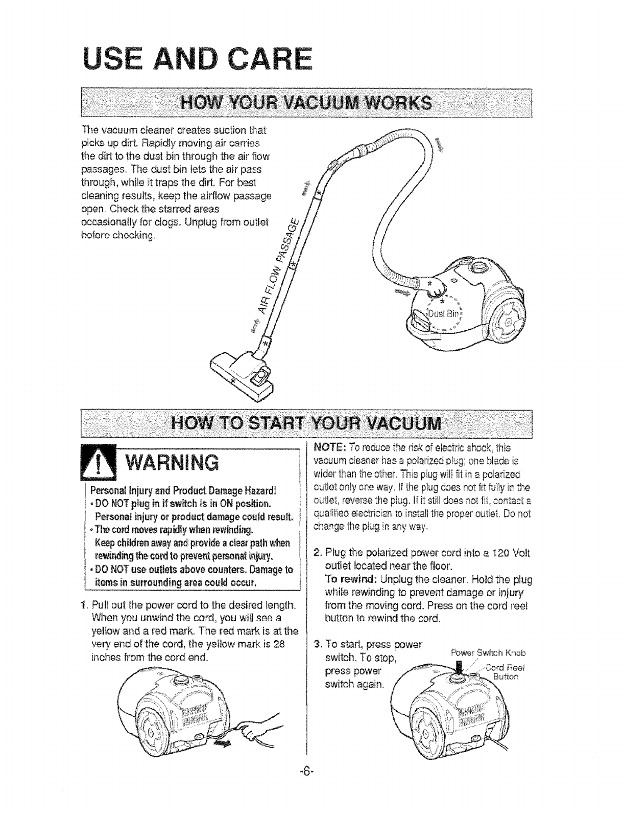 vacuum cleaner use. During the warranty year, when this vacuum cleaner is operated and