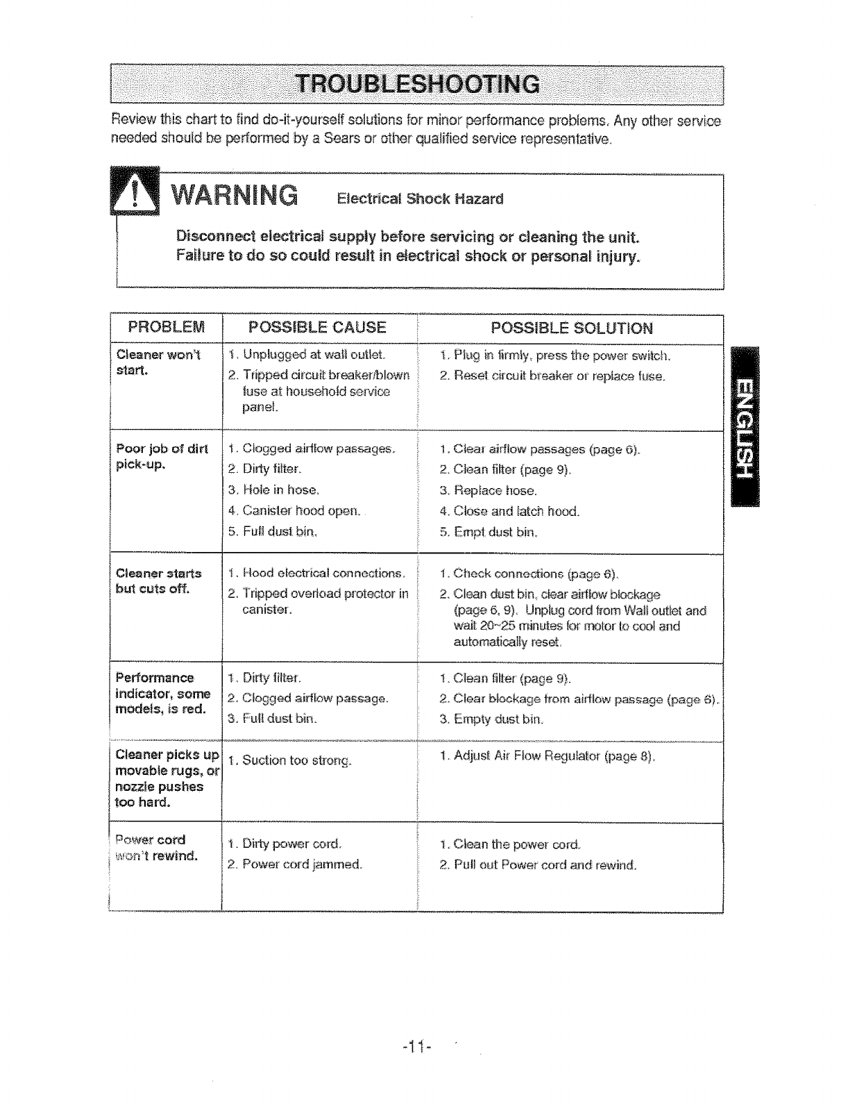For warranW service, return this v_u_m cleaner to the nearest Sears Service Center in