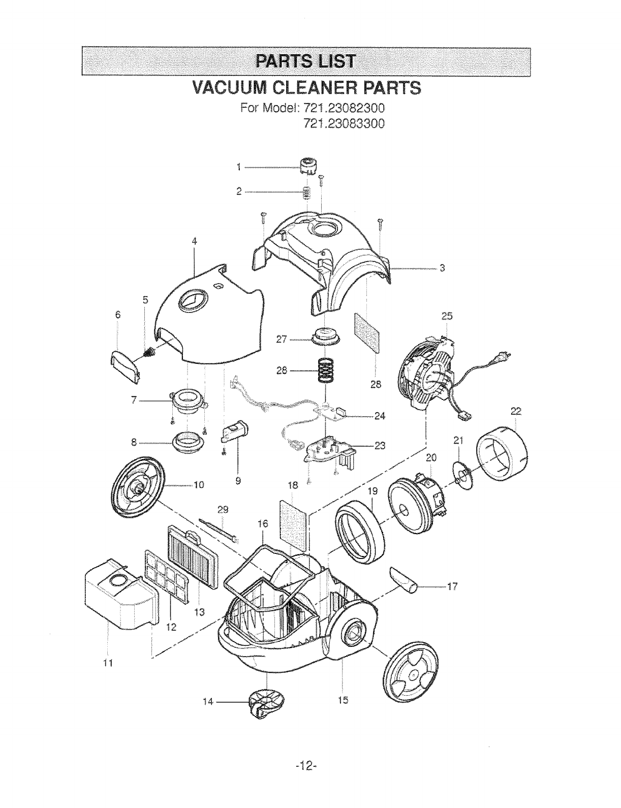 User Manual: Kenmore 72123082300 72123082300 KENMORE VACUUM CLEANER - Manuals and Guides View the owners manual for your KENMORE VACUUM CLEANER #72123082300. Home:Vacuums & Floor Care Parts:Kenmore Parts:Kenmore VACUUM CLEANER Manual