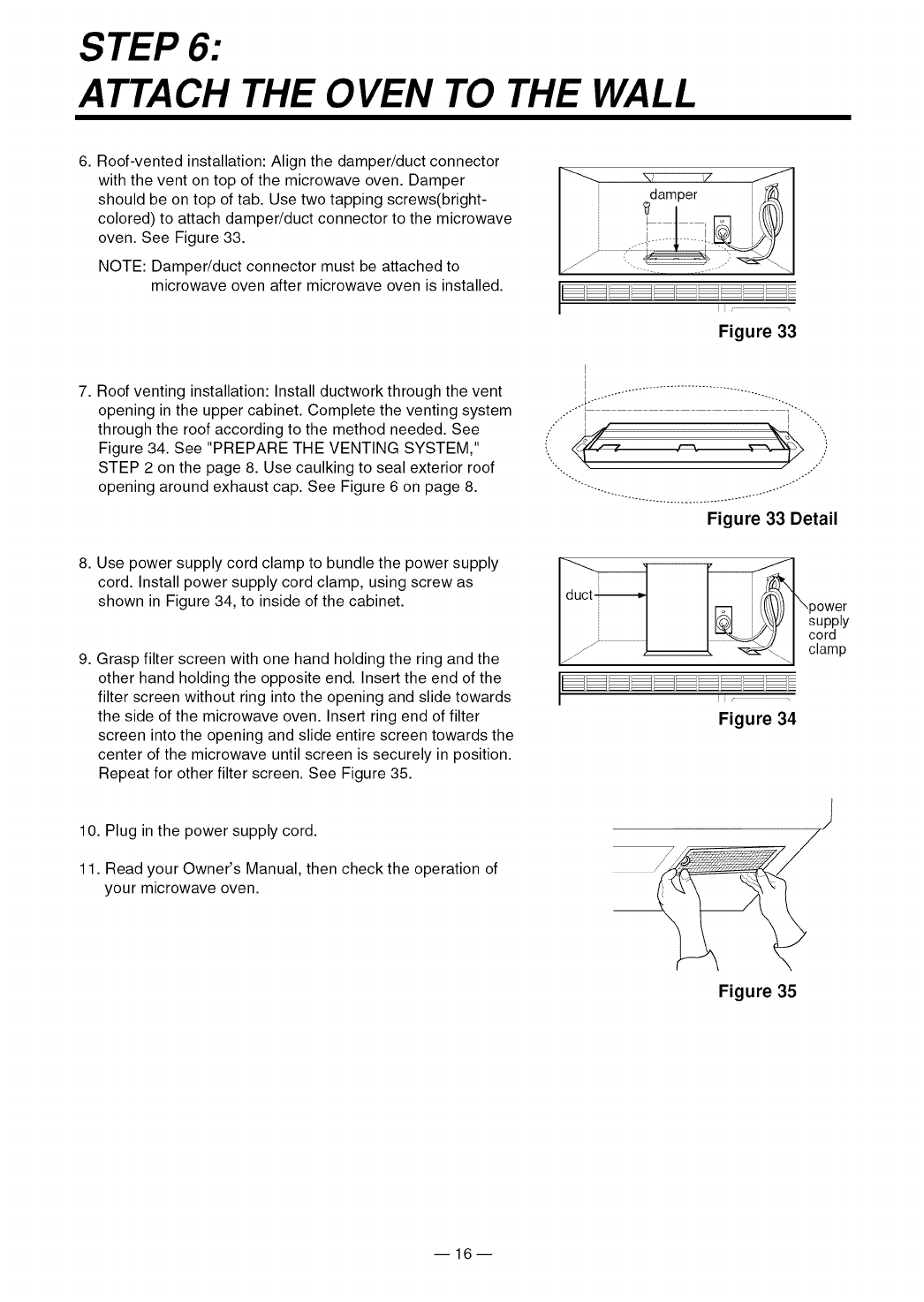 1. Carefully lift microwave oven and hang it on support tabs