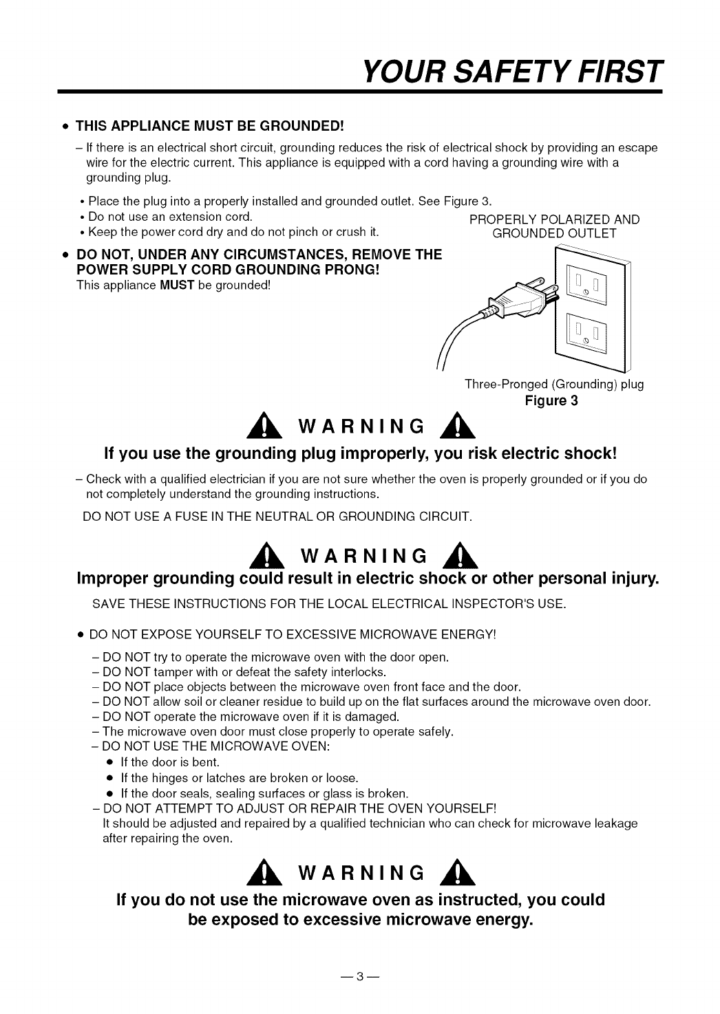• Place the plug into a properly installed and grounded outlet. See Figure 3.