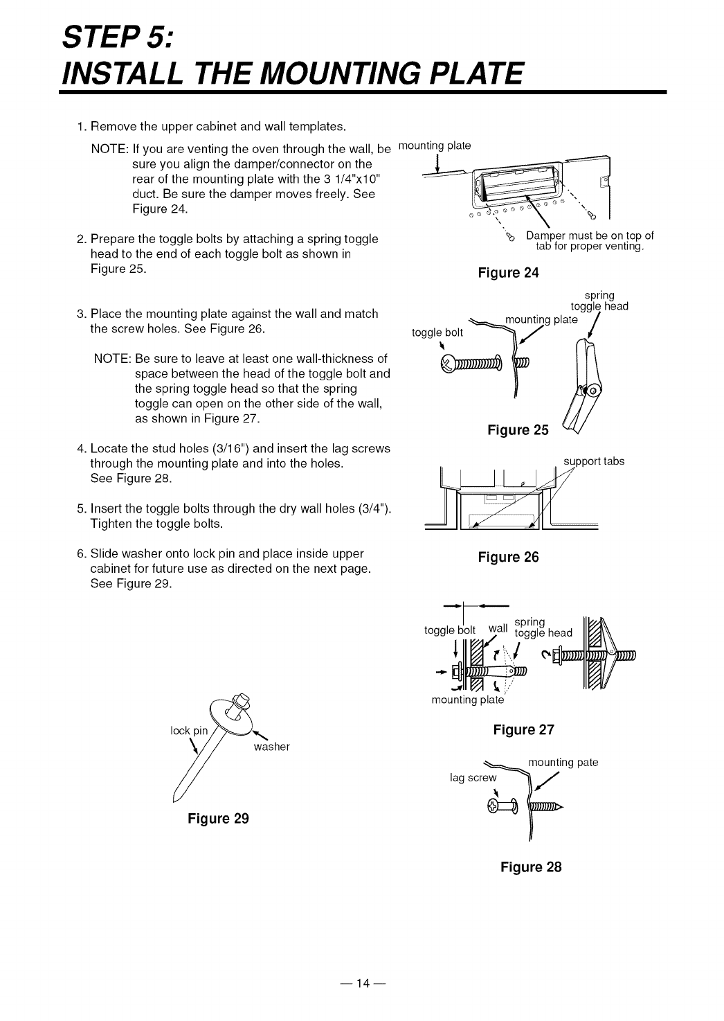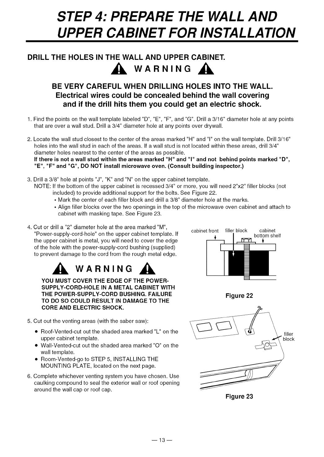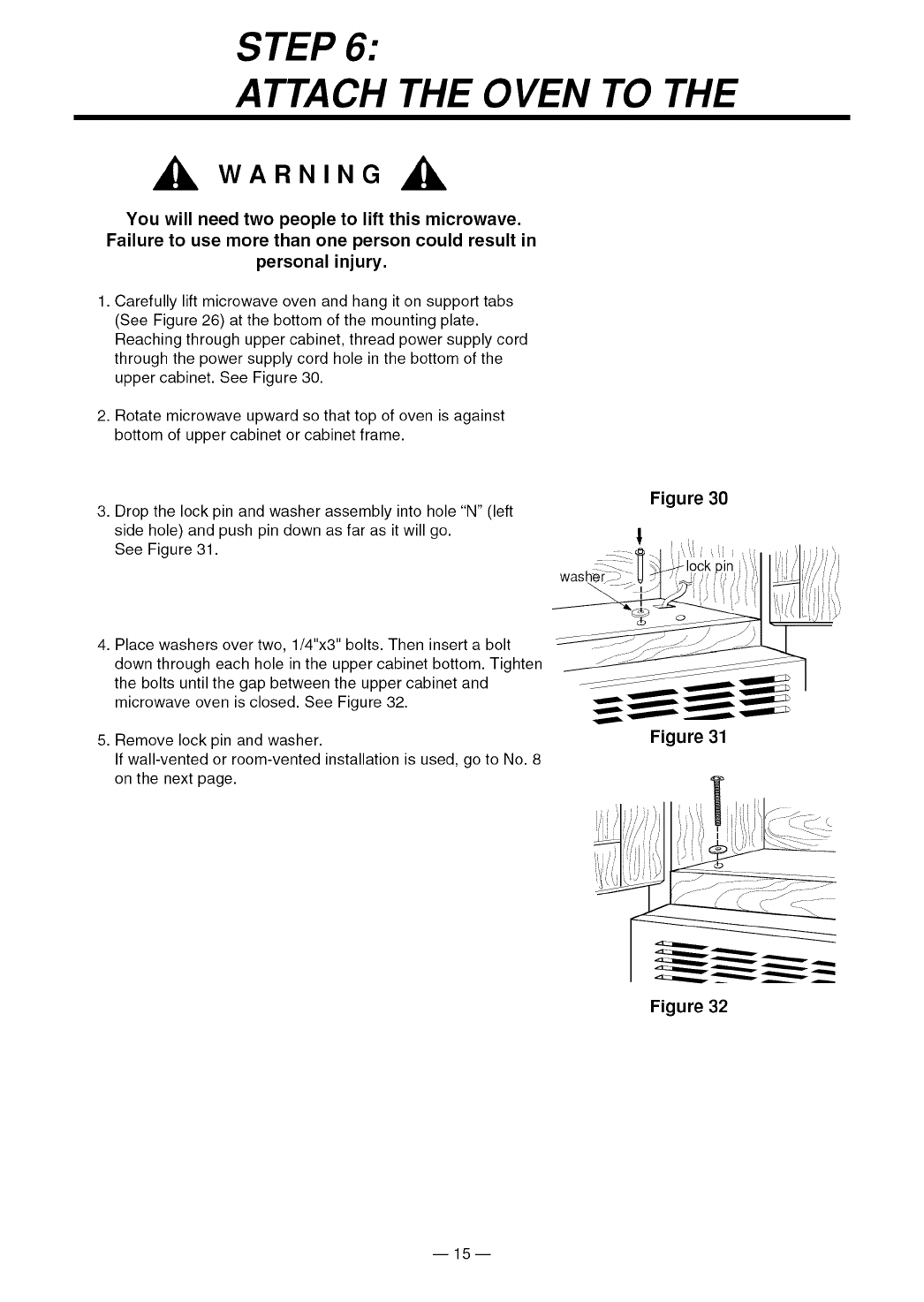 - BE SURE the upper cabinet and rear wall structures are able to support 150 Ibs., plus the weight of any