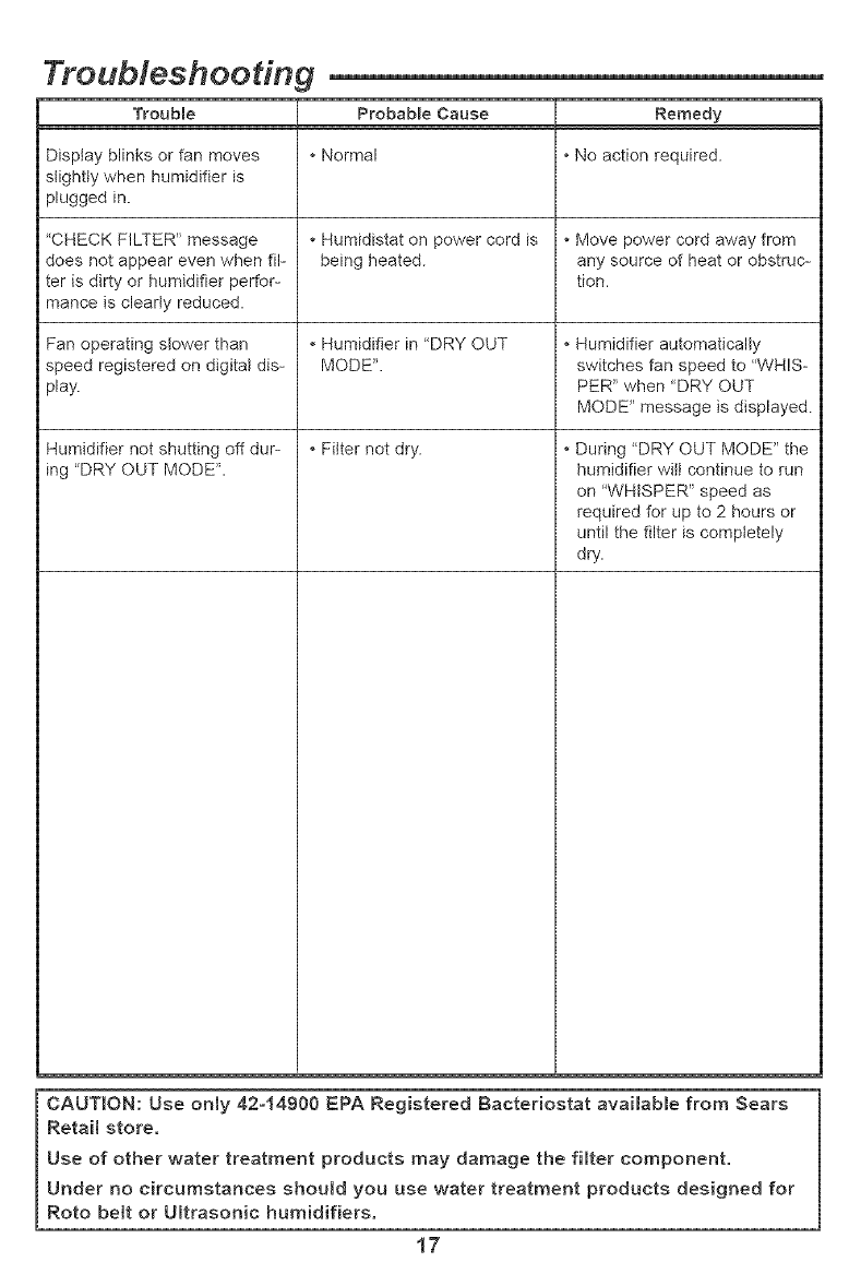 ter is dirty or humidifier perfor- tion.