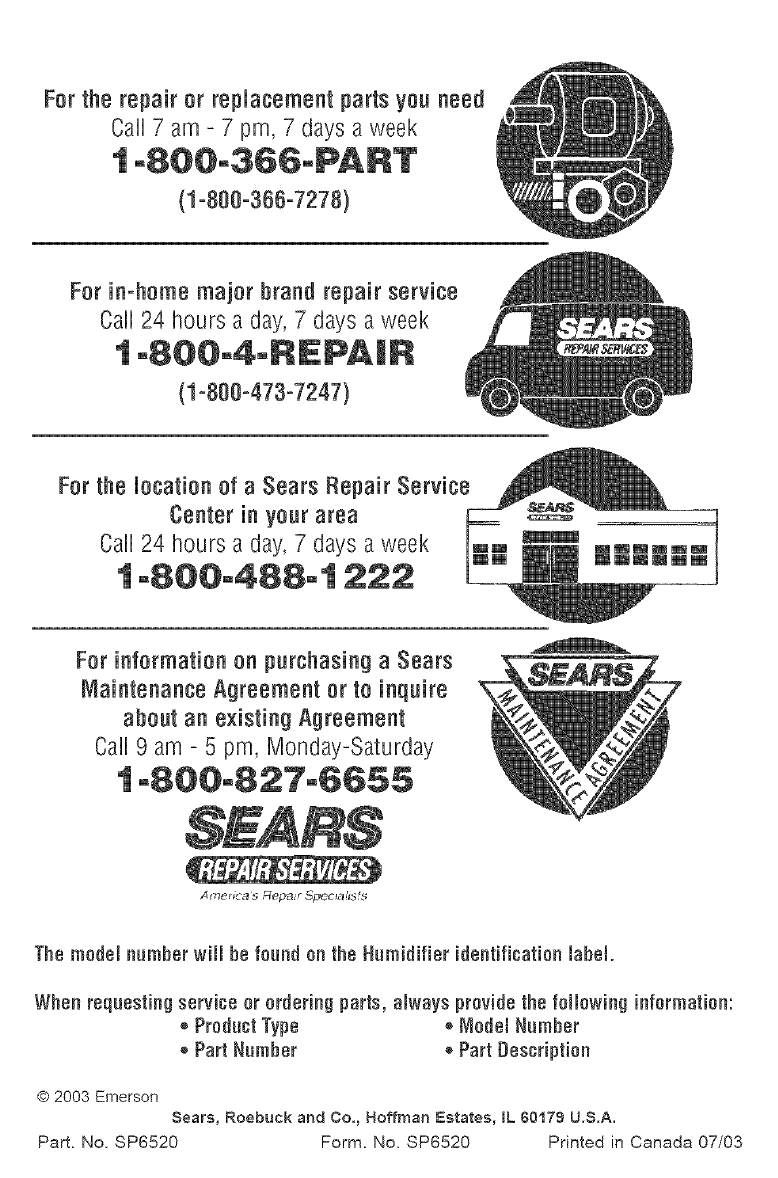Part No. SP6520 Printed in Canada