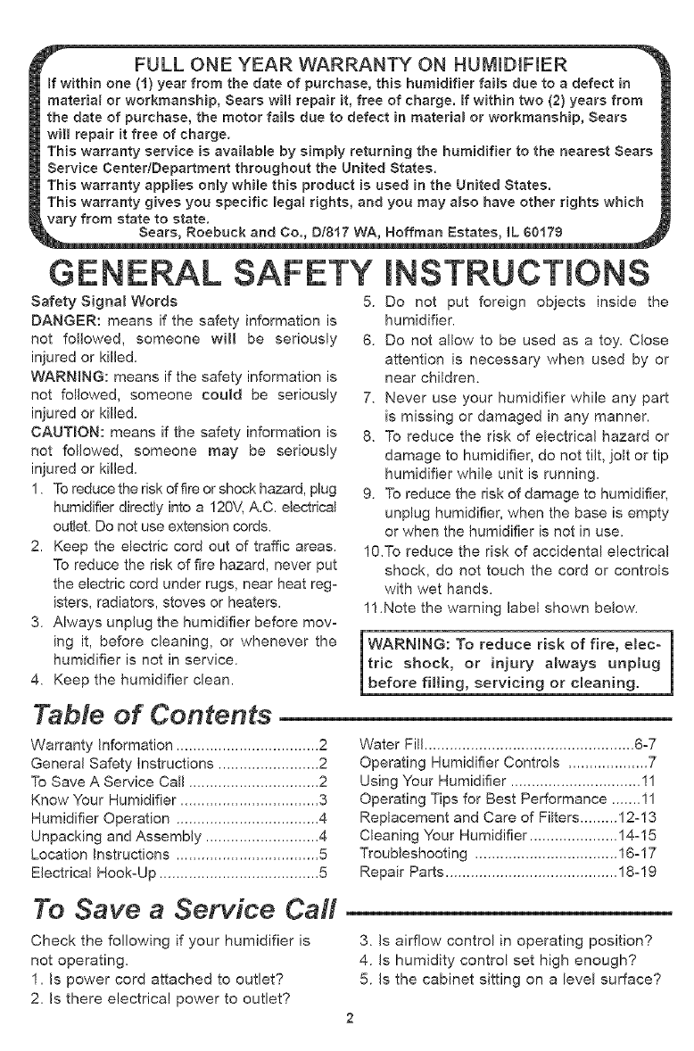 This warranty service is available by simply returning the humidifier to the nearest Sears