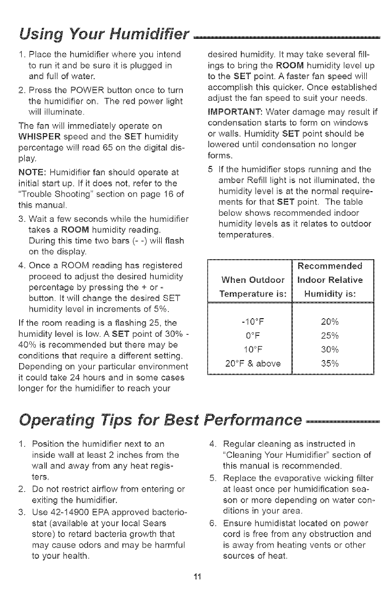 Using Your Humidifier ............................... !1