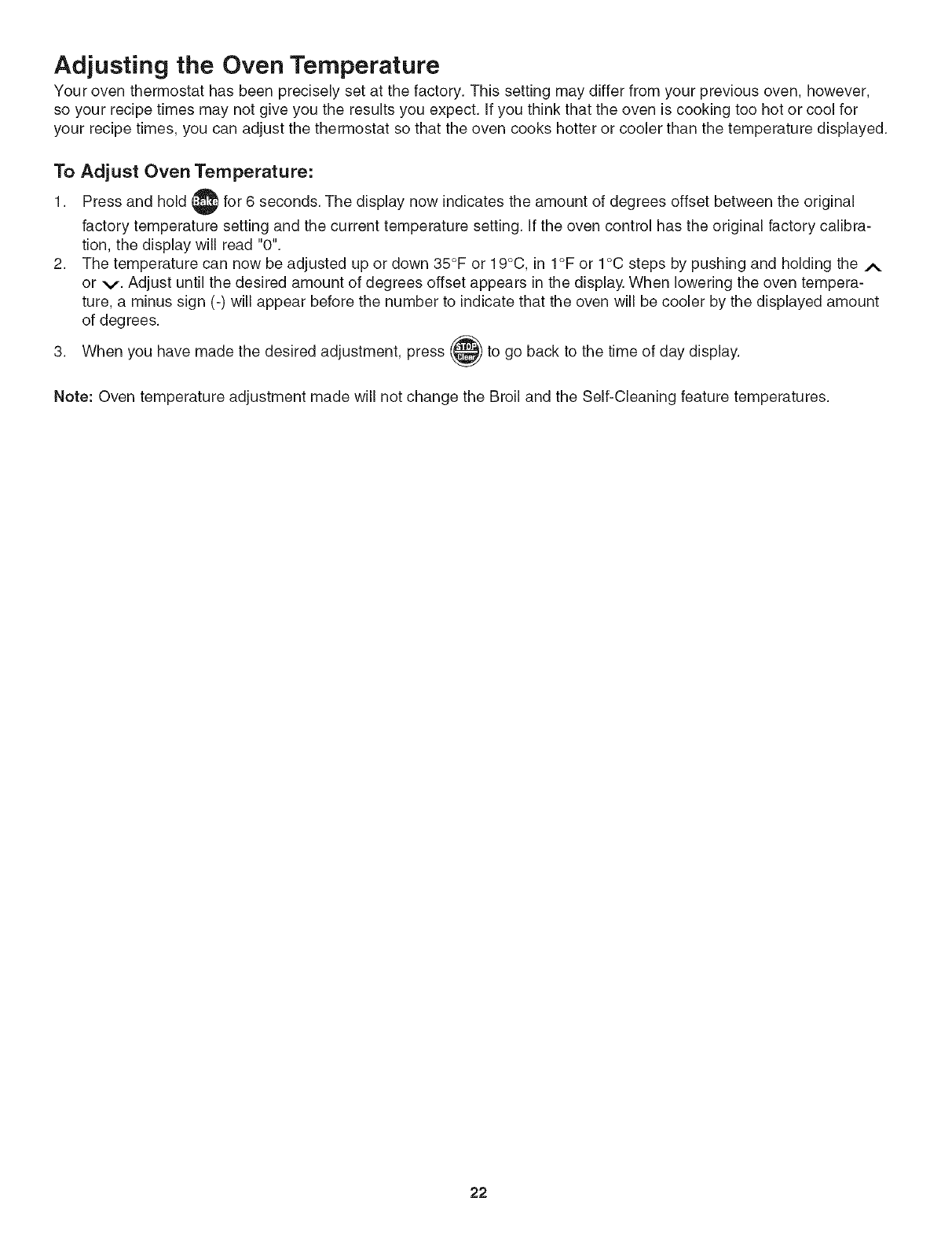 Note: Oven temperature adjustment made will not change the Broil and the Self-Cleaning feature temperatures.